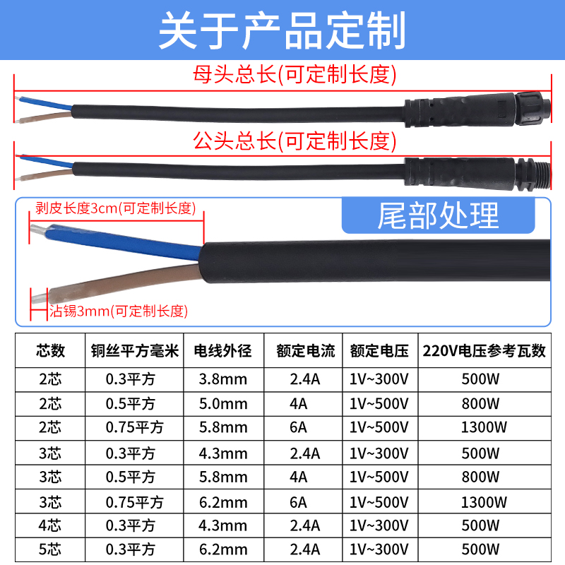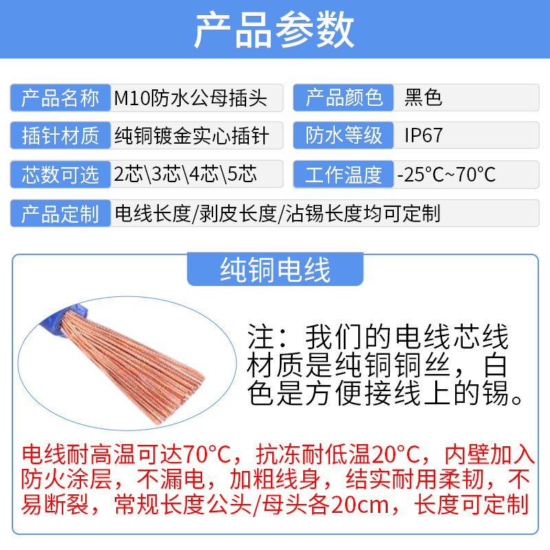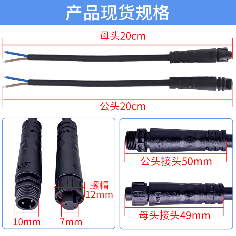 m10公母对接插头汽车防水连接器电源电线航空快速接头2芯3芯4芯5