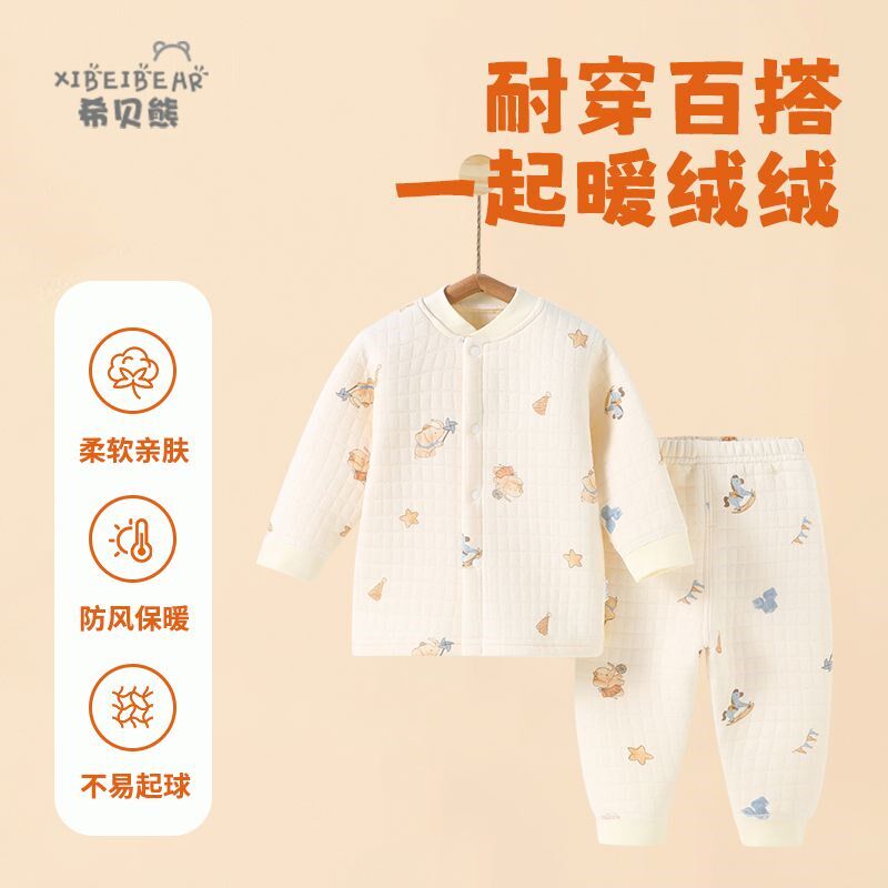 婴儿保暖套装内衣秋冬衣服男女宝宝三层夹棉套装秋衣秋裤加厚睡衣