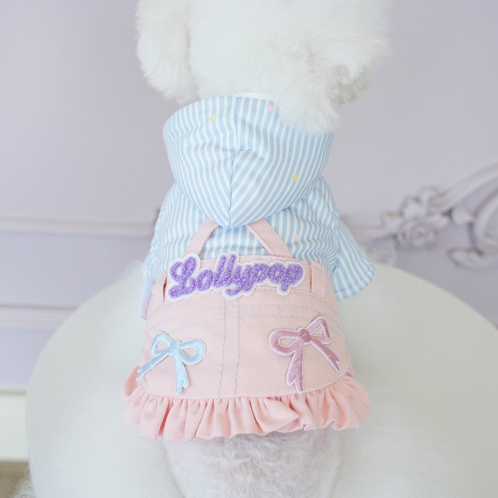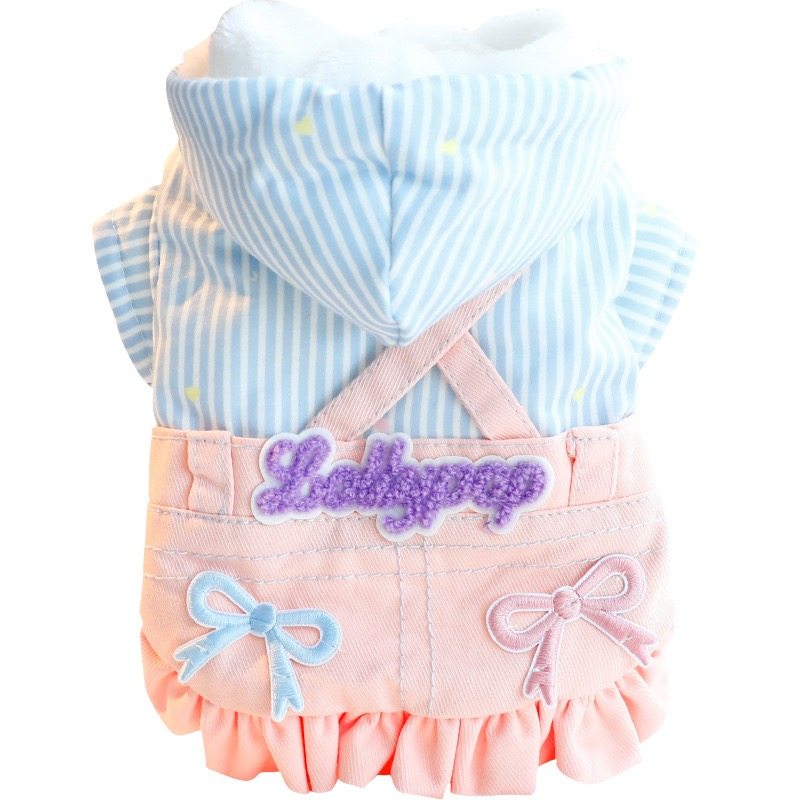 狗狗衣服秋冬装加厚猫咪公主背带裙条纹棉衣可牵引小型犬泰迪宠物
