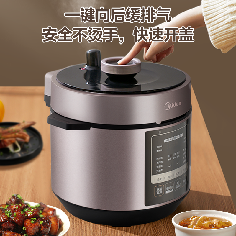 美的电压力锅家用高压电饭煲5L升创新巧鲜阀0涂层大容量正品官方