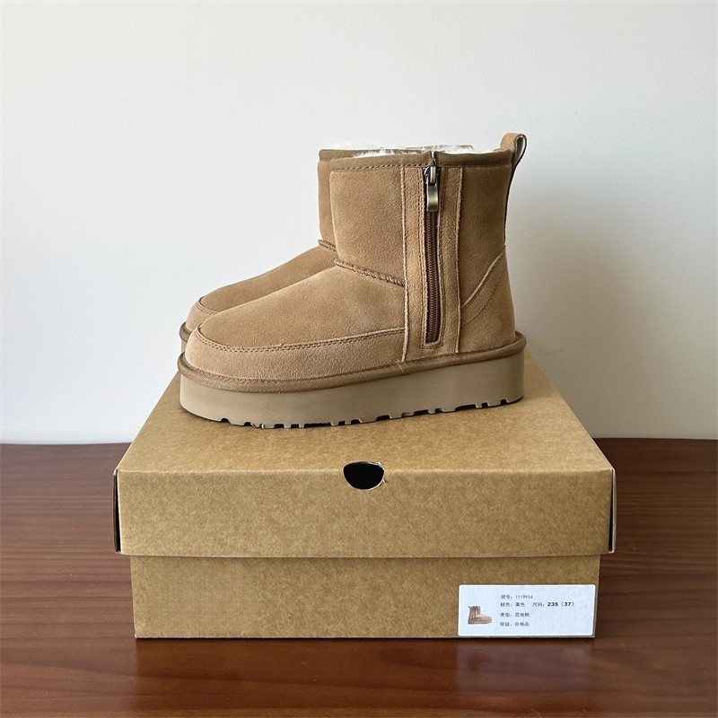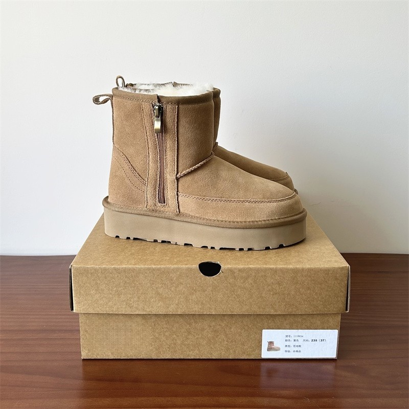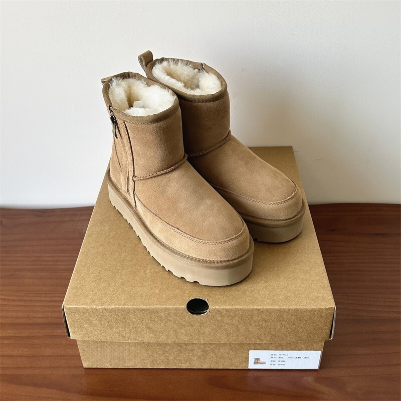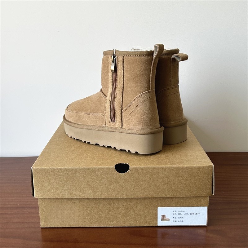 河南桑坡村羊皮毛一体真皮纯羊毛厚底增高侧拉链雪地靴女冬季短筒