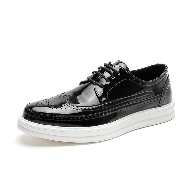 秋季百搭皮鞋男士英伦雕花布洛克男鞋透气潮流休闲鞋亮面漆皮板鞋