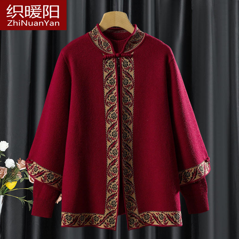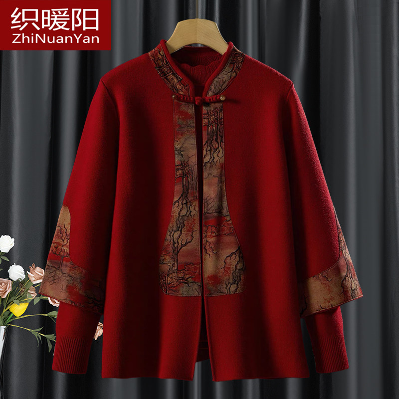妈妈秋冬喜庆两件套中老年女装秋装洋气上衣喜婆婆新中式羊毛外套