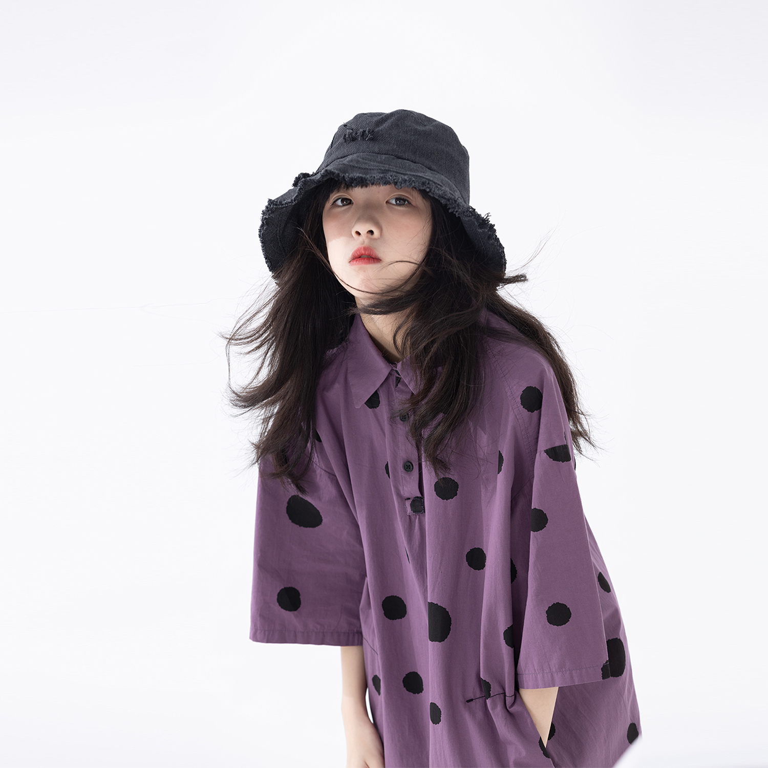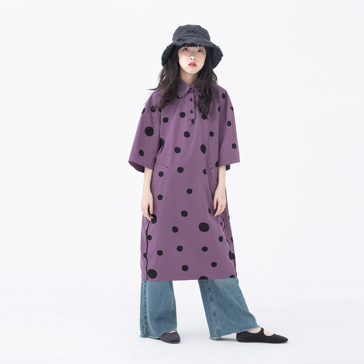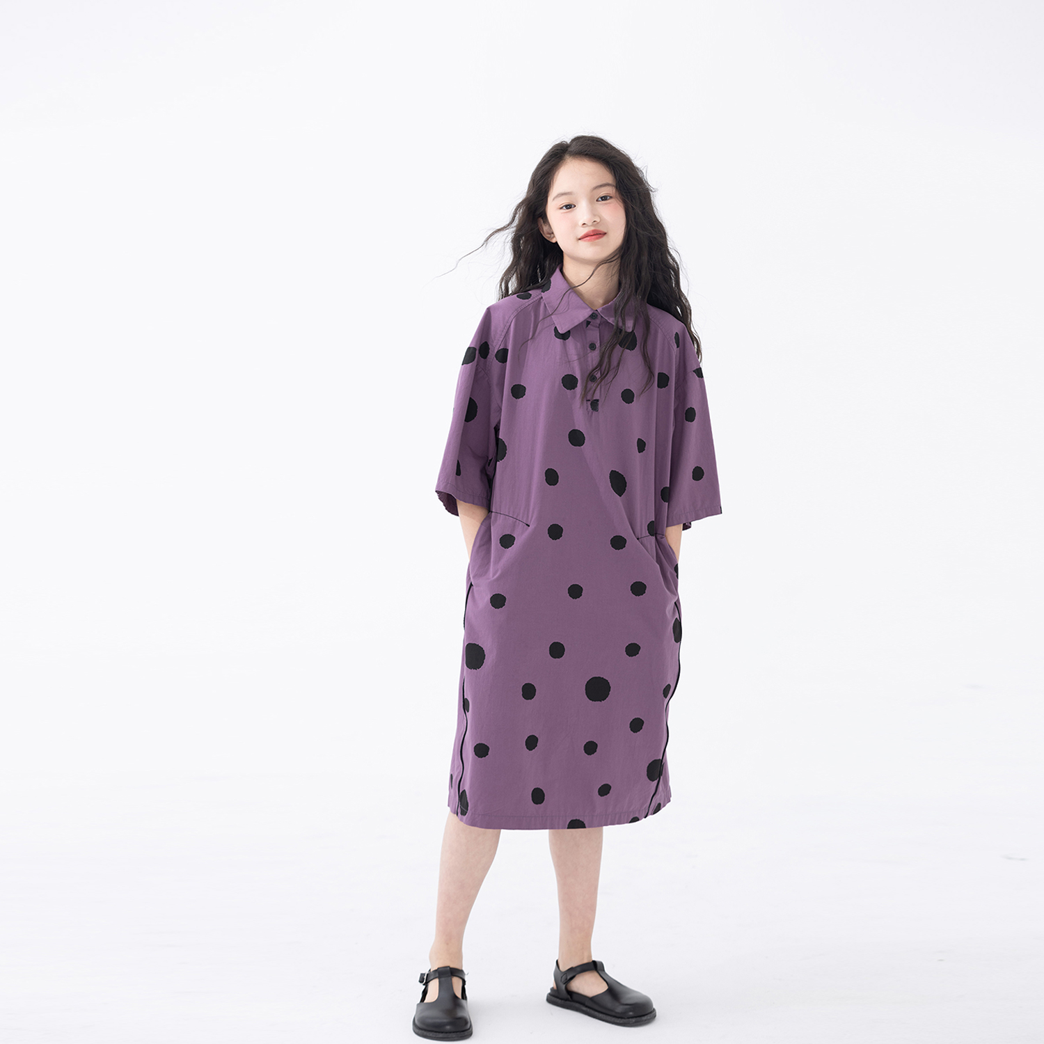 小小大星球童装 紫苏点点印花Polo衫连衣裙 夏日女童休闲短袖裙子