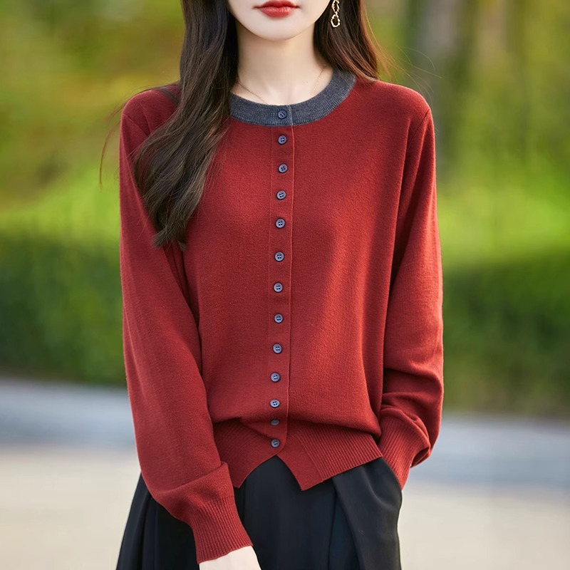 断码清仓特价拼色圆领羊毛针织开衫外套女春秋宽松短款毛衣外搭