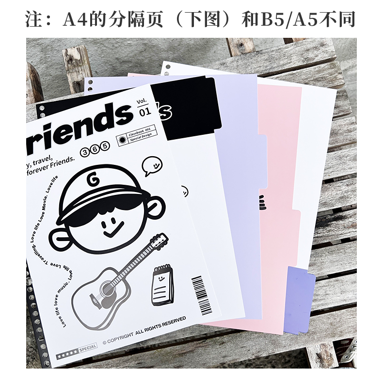 活页本配件A4/A5/B5活页笔记本封面分隔页分页纸16K30/20/26孔索引活页本分页隔页纸分类标签隔页板分割目录