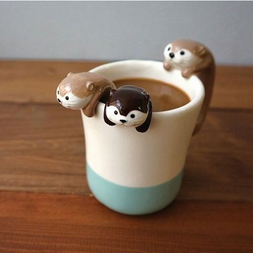 日本Decole手绘水獭陶瓷马克杯/水獭筷子架/创意杯子礼物可爱动物