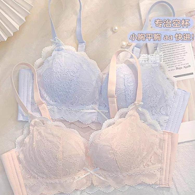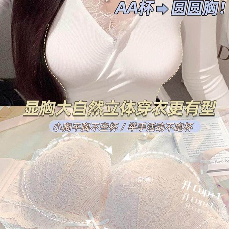 小胸聚拢显大内衣女士无钢圈收副乳上托防下垂性感蕾丝文胸罩夏季