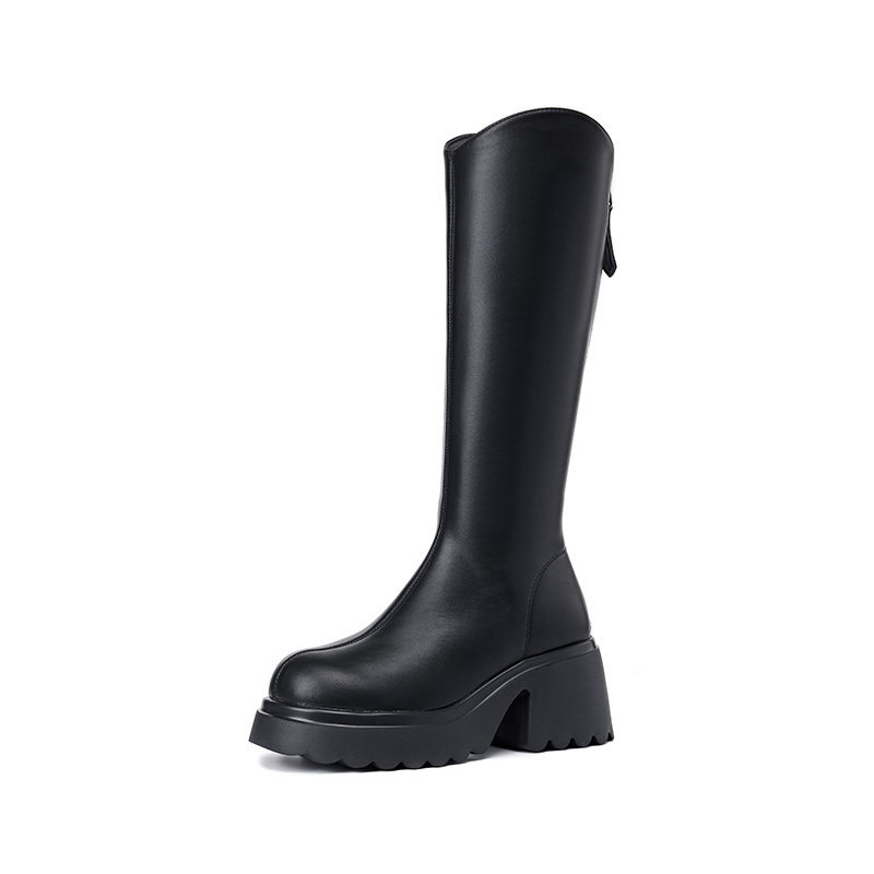 大东女靴厚底长筒靴女2025新款加绒靴子秋冬高筒骑士靴小个子长靴