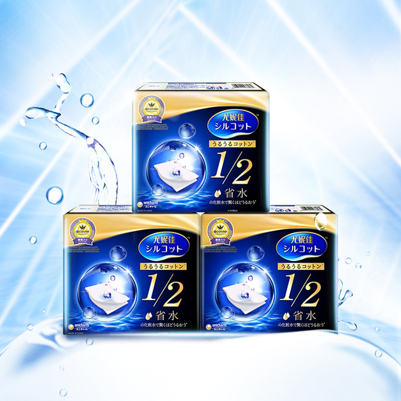 Silcot/舒蔻尤妮佳1/2省水化妆棉湿敷补水保湿敷脸卸妆棉40片*3盒