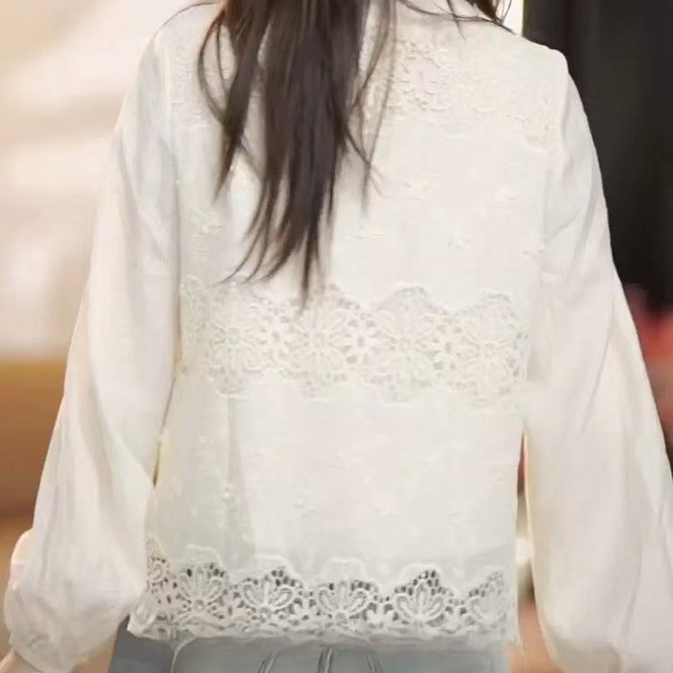 春季新款减龄设计感蕾丝衬衫百搭灯笼袖提花镂空单排扣优雅上衣