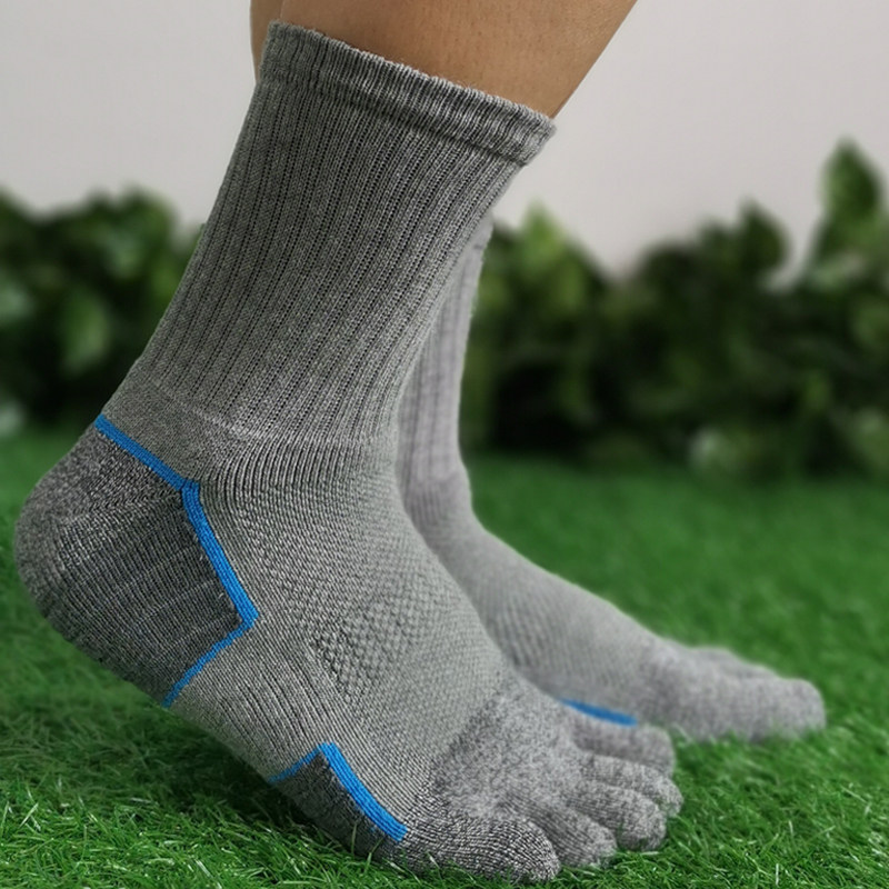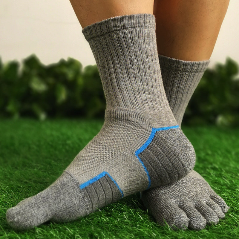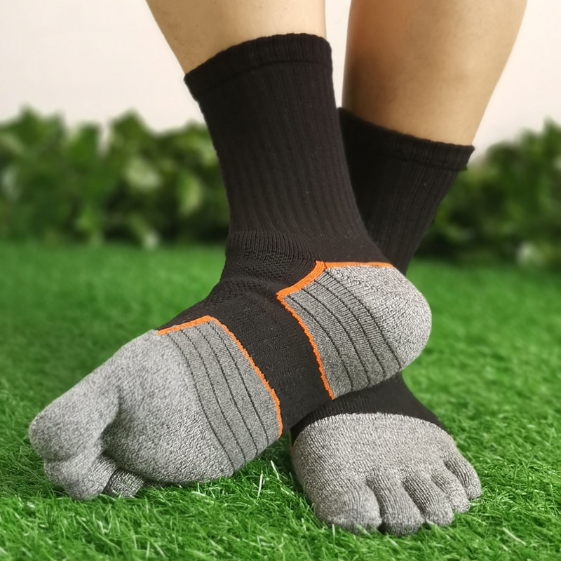 新款五指袜男女中筒加厚毛巾底户外登山徒步分趾袜运动跑步五趾袜