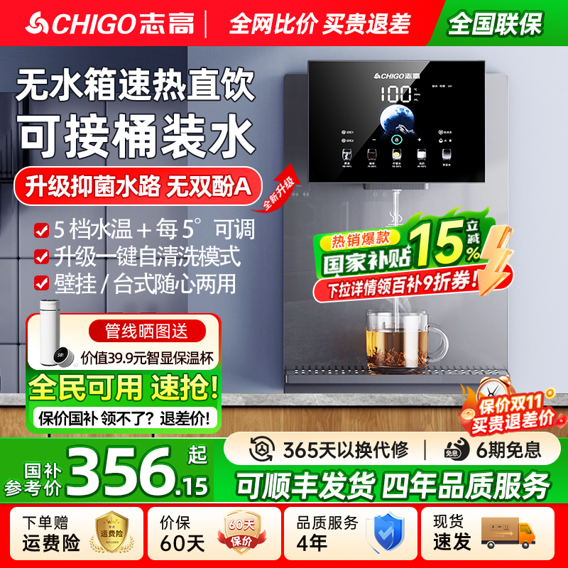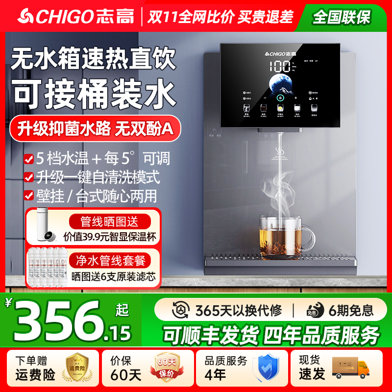 志高无水箱管线机自吸桶装水家用壁挂式直饮制冷即热饮水机2025新