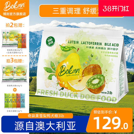 Bokan博刻奇异果雪梨鸭肉犬粮3磅三重调理舒缓泪痕清热去火狗粮