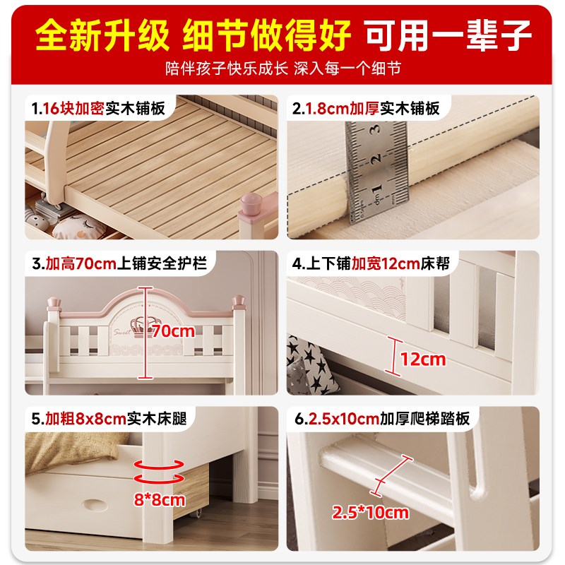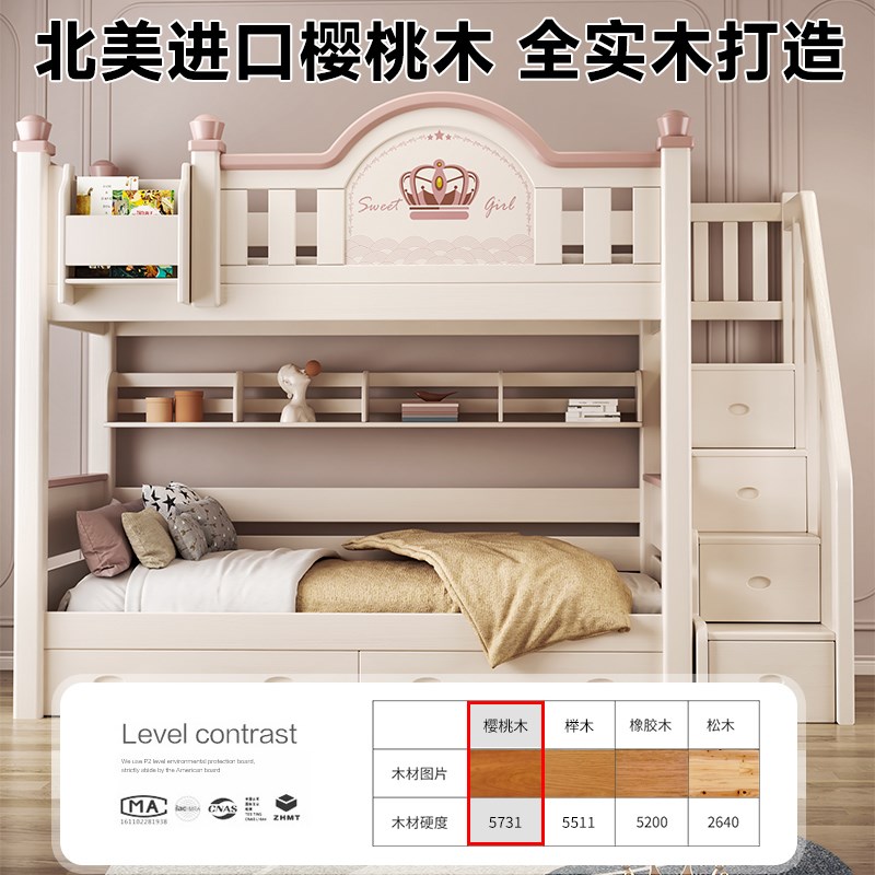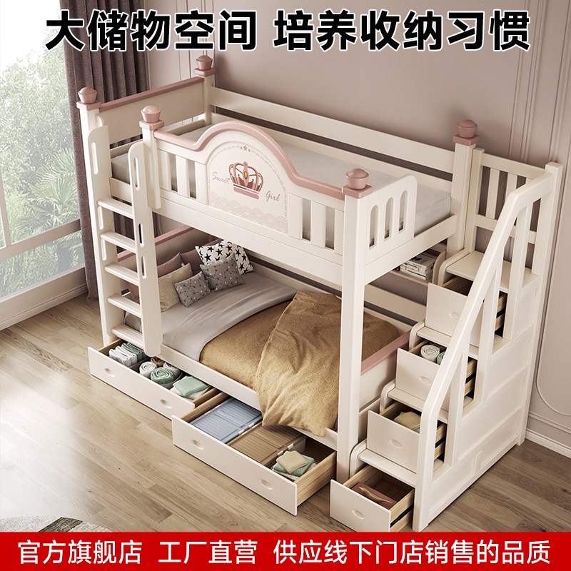 全实木上下铺双层床儿童床女孩多功能床高低床子母床双层床上下床