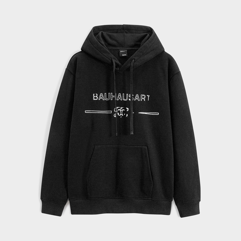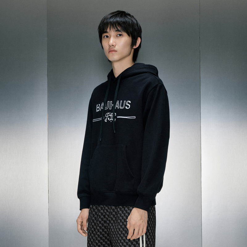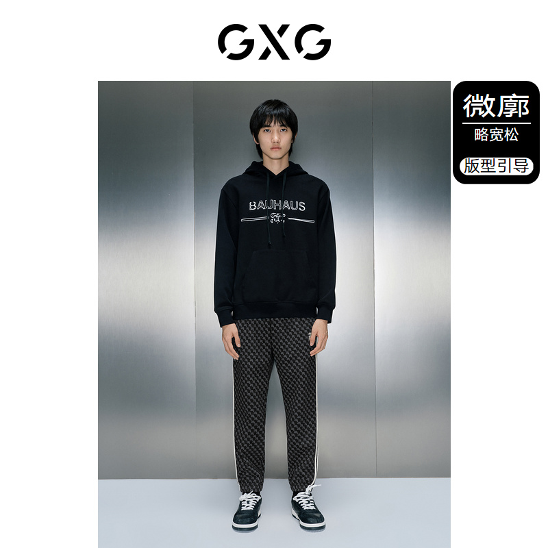 GXG男装 拉浆印花黑色连帽卫衣 23年冬季品GEX13129114
