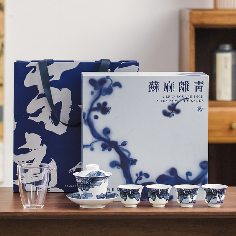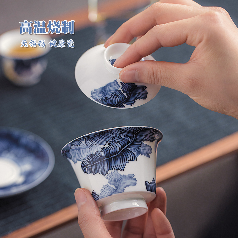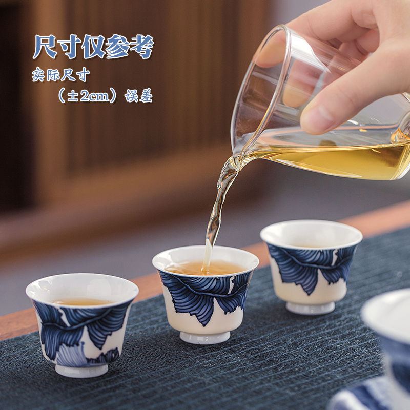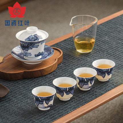 红叶陶瓷景德镇6头苏麻离青茶具杯家用客厅中式整套茶具套装送礼