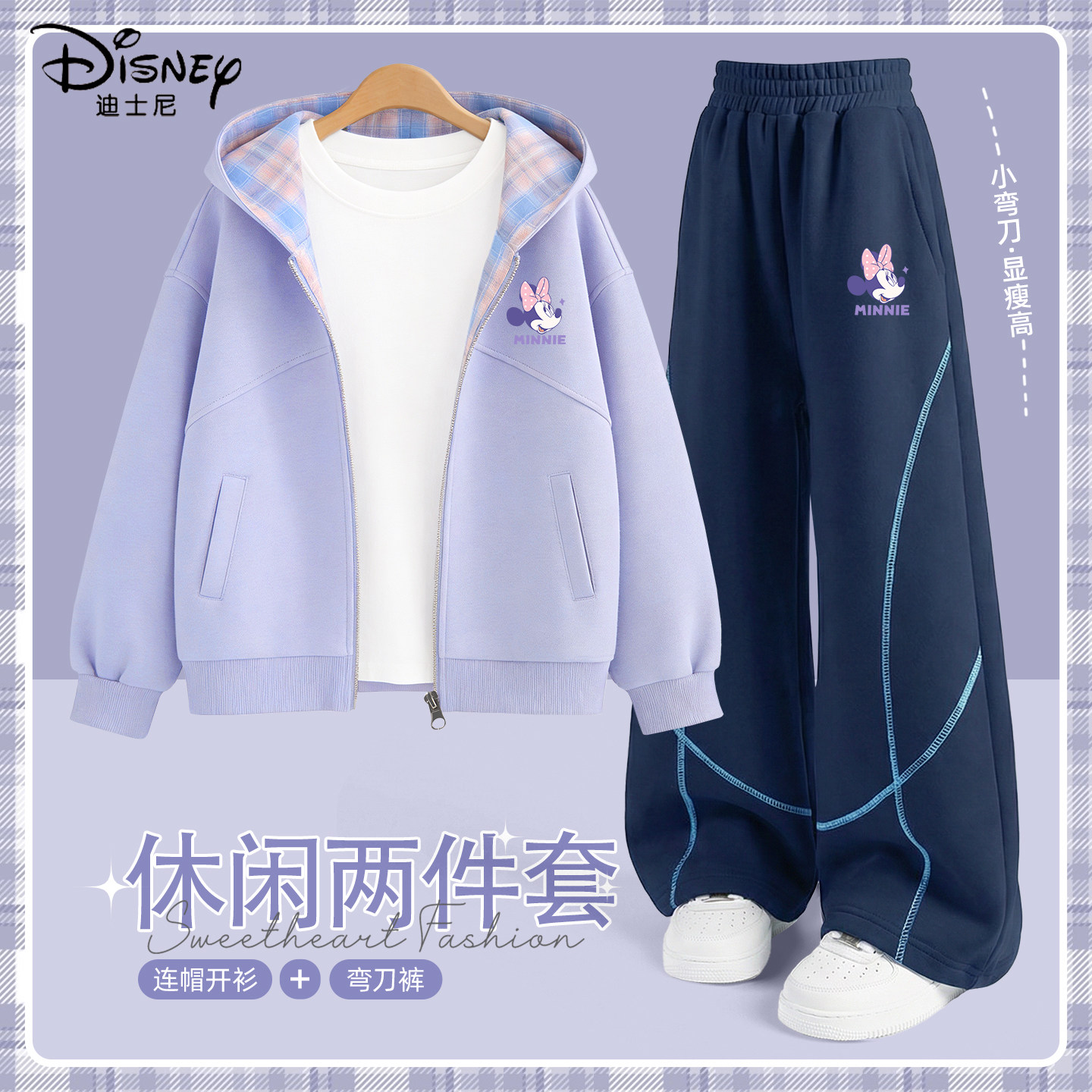 迪士尼女童春装套装2026新款休闲运动春秋款衣服洋气春季儿童外套
