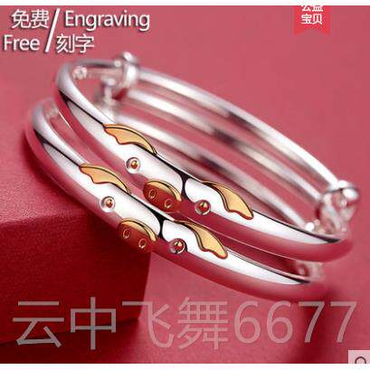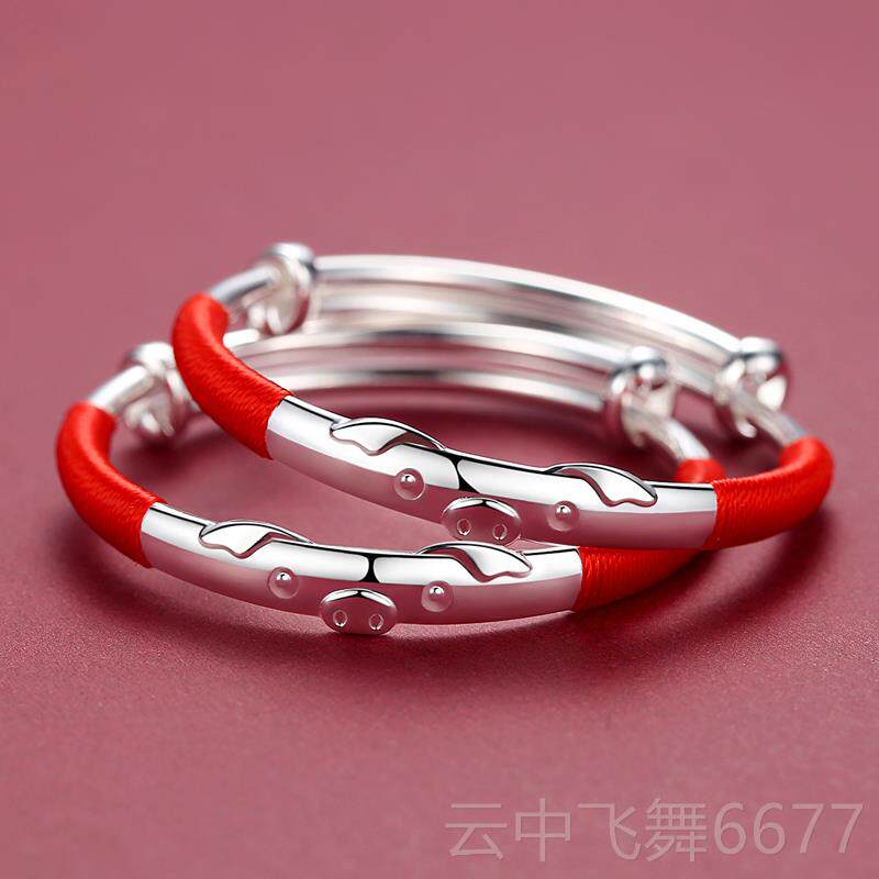 正品猪宝宝银99纯银镯子婴儿童男女手小孩满月礼银饰品周足岁生肖