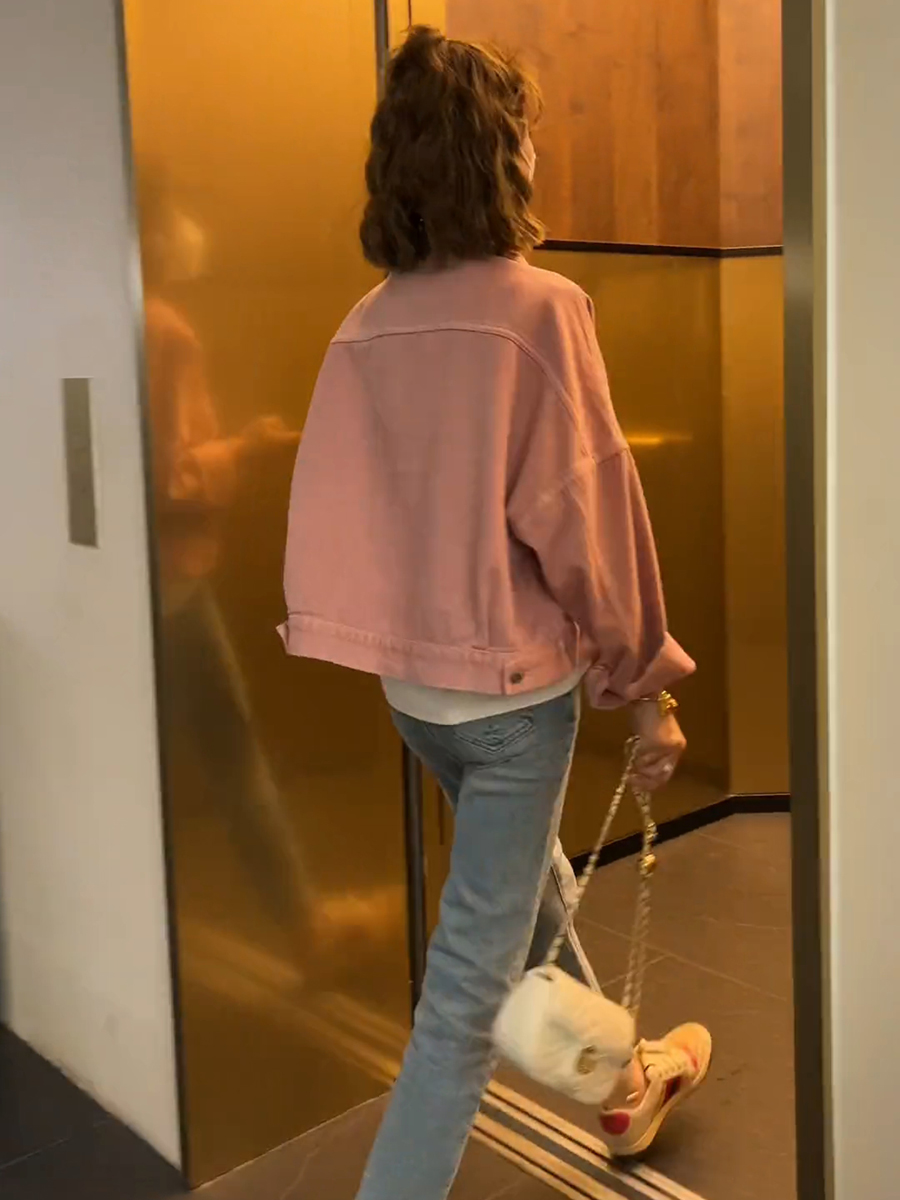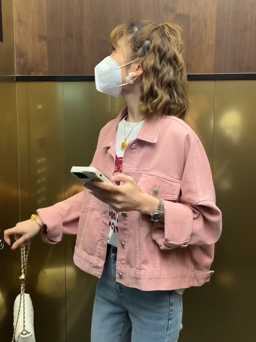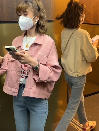 春牛仔外套女短款小个子粉色上衣