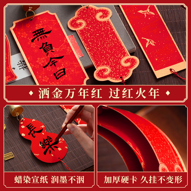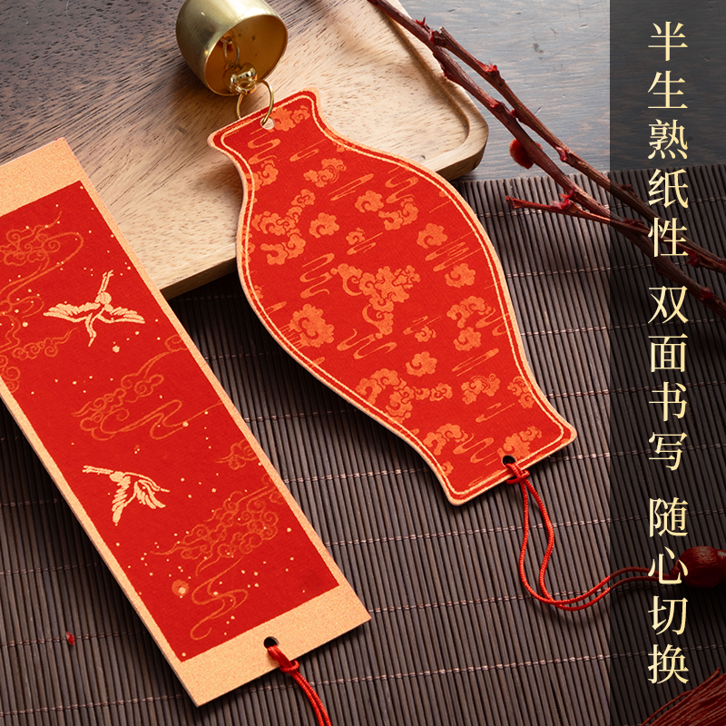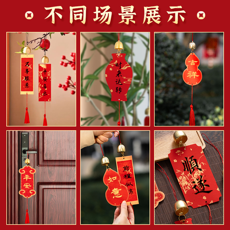 2026年新款铃铛福卡挂件空白手写书法文创风铃福字红纸蜡染卡纸万年红宣纸对联春联纸中国结新年硬卡挂饰diy