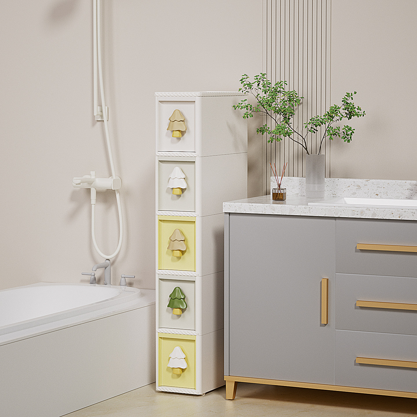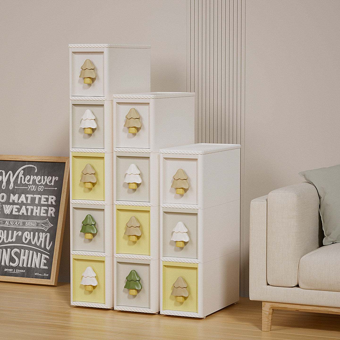绣川奶油森林缝隙柜靠墙带轮子