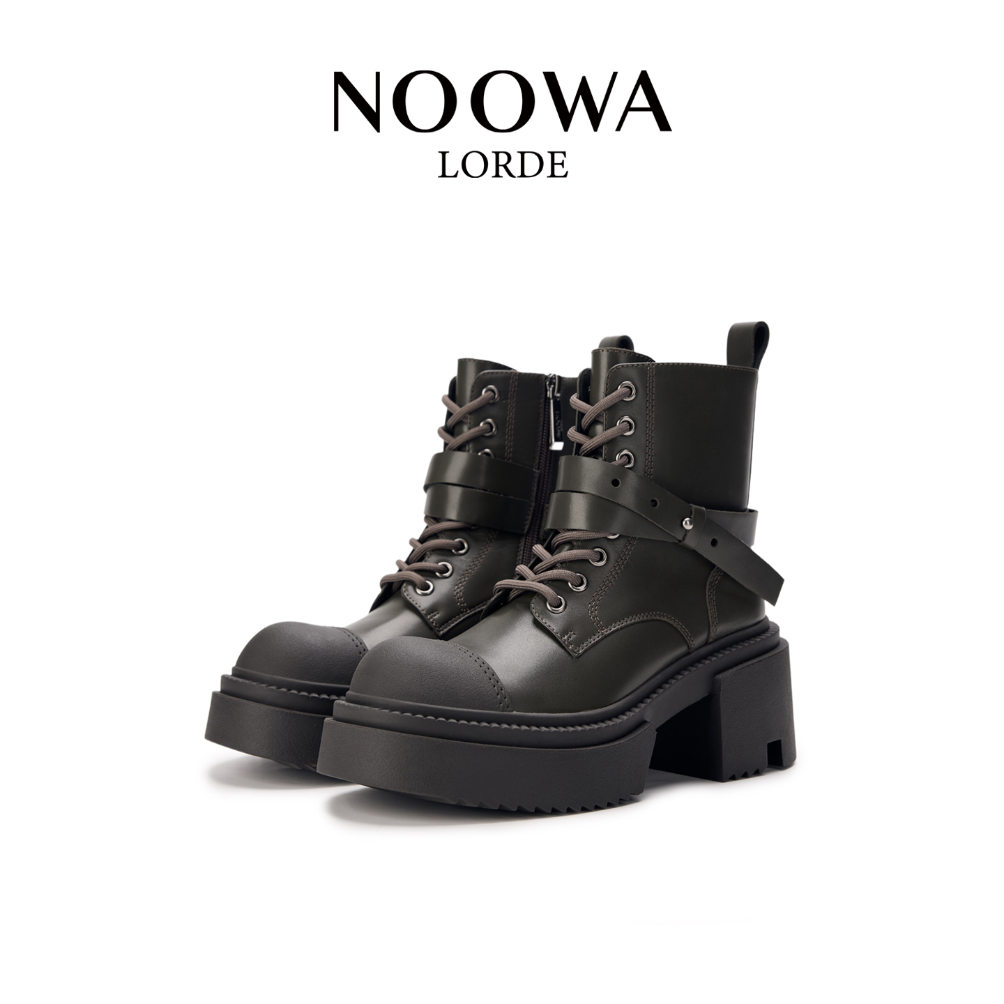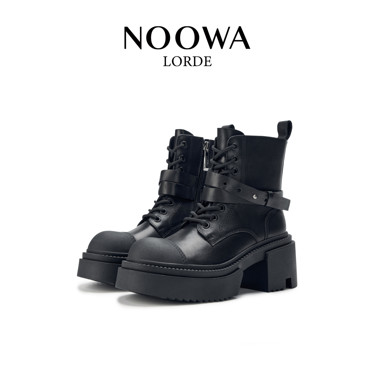 NOOWA设计师款真皮马丁靴女款2025新款英伦风粗跟增高皮带扣短靴