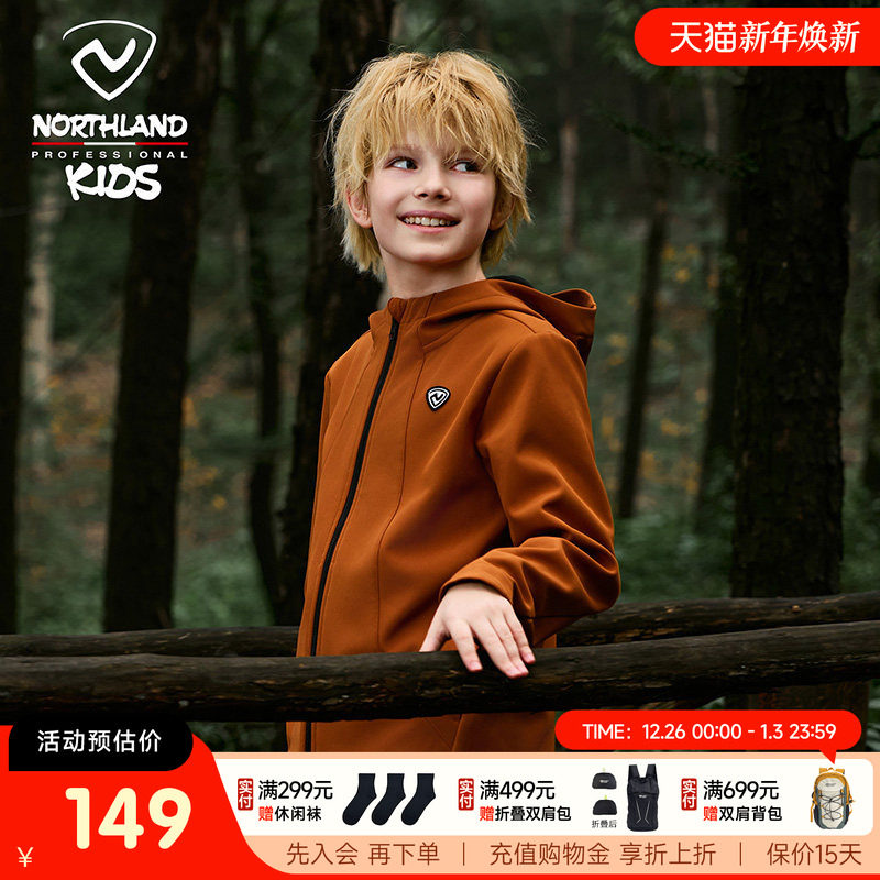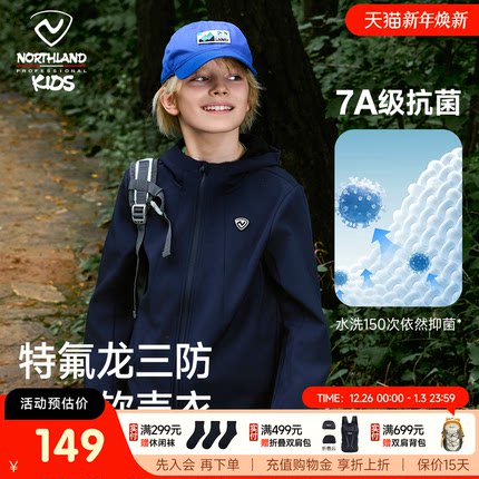 诺诗兰儿童冲锋软壳衣秋季新款男女童抓绒防泼水户外登山防风外套