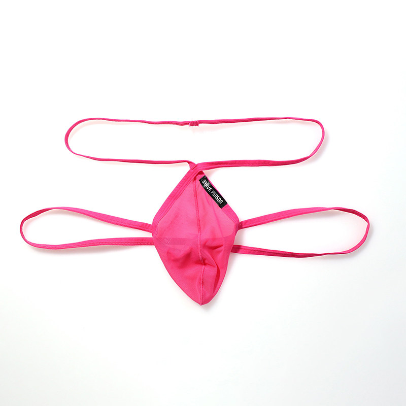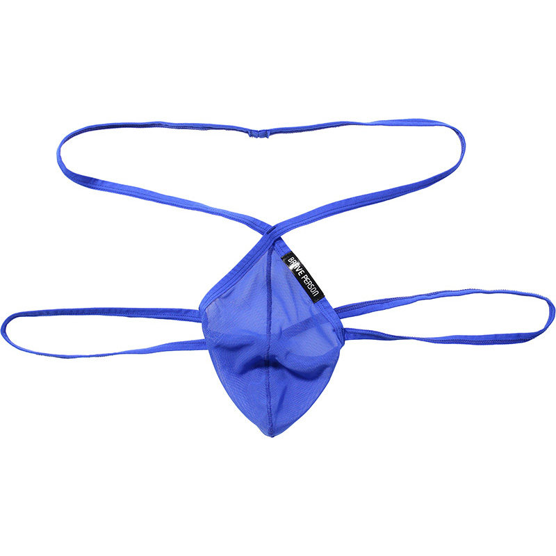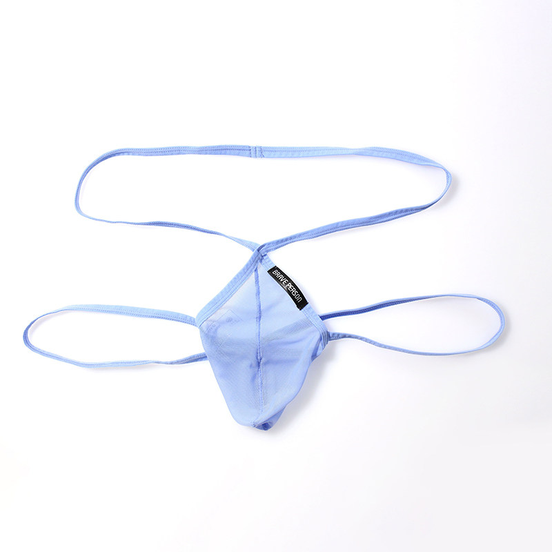 新款男士低腰性感弹力透明透气网纱内裤 细带微提臀U凸囊袋双丁裤
