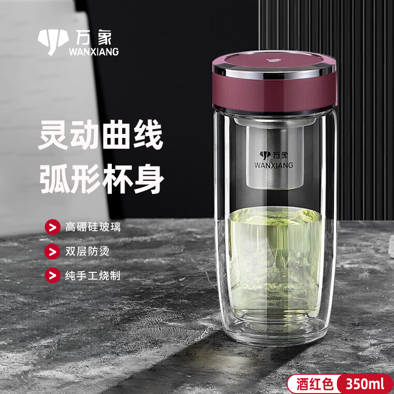 万象双层玻璃杯商务鹅蛋杯隔热男女高档大肚水杯子茶杯V194/V195