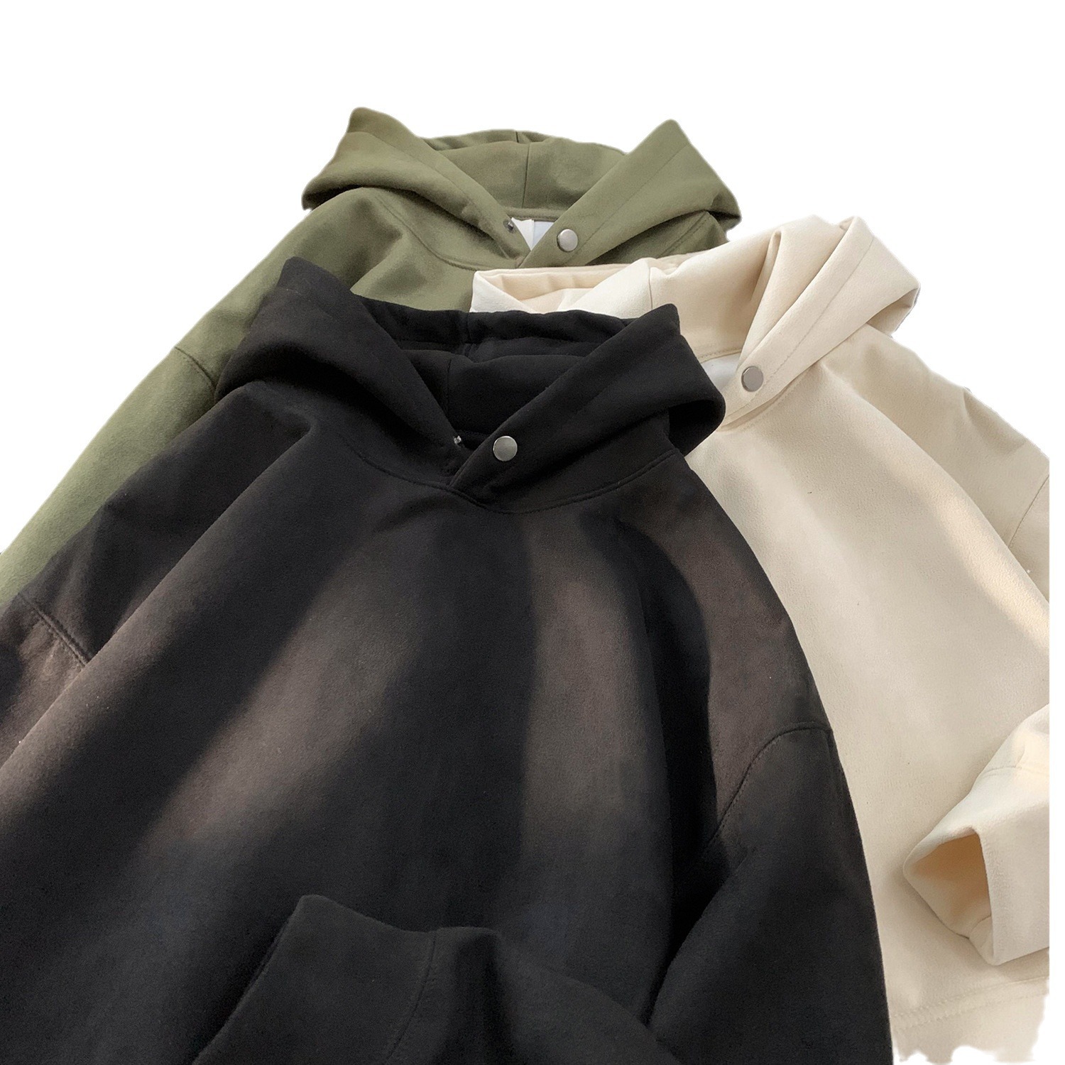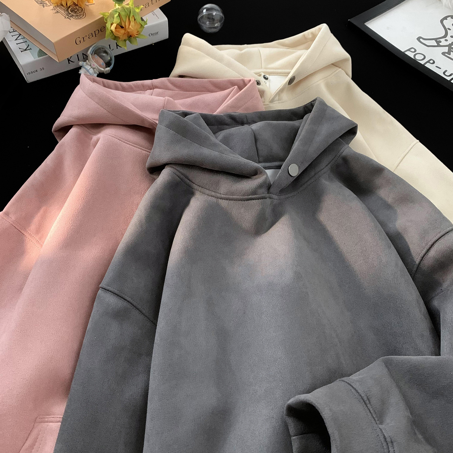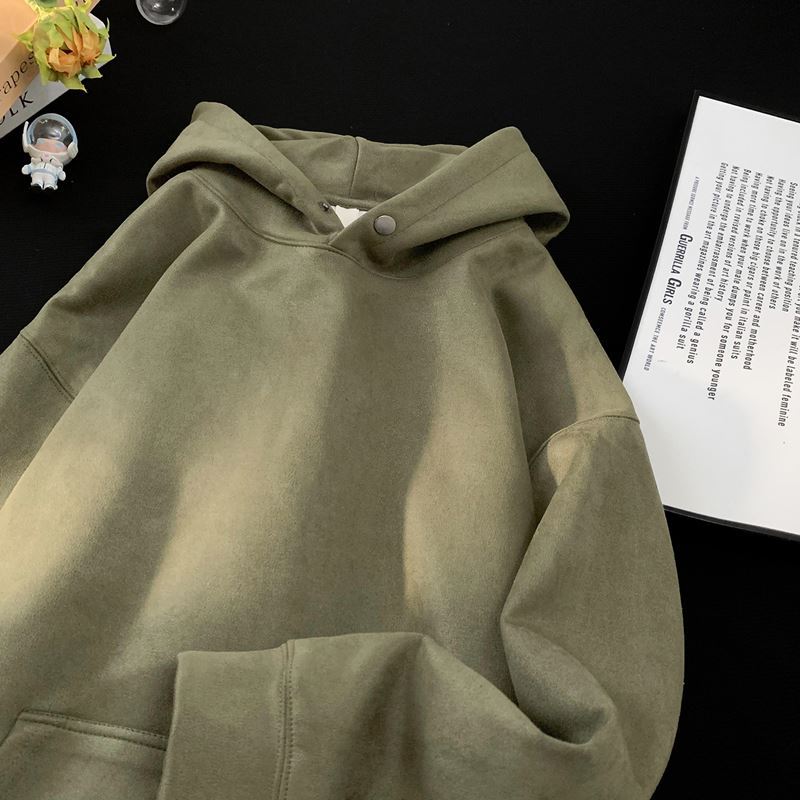 纯色麂皮绒卫衣男士连帽秋季美式重磅衣服春秋款复古潮牌痞帅上衣