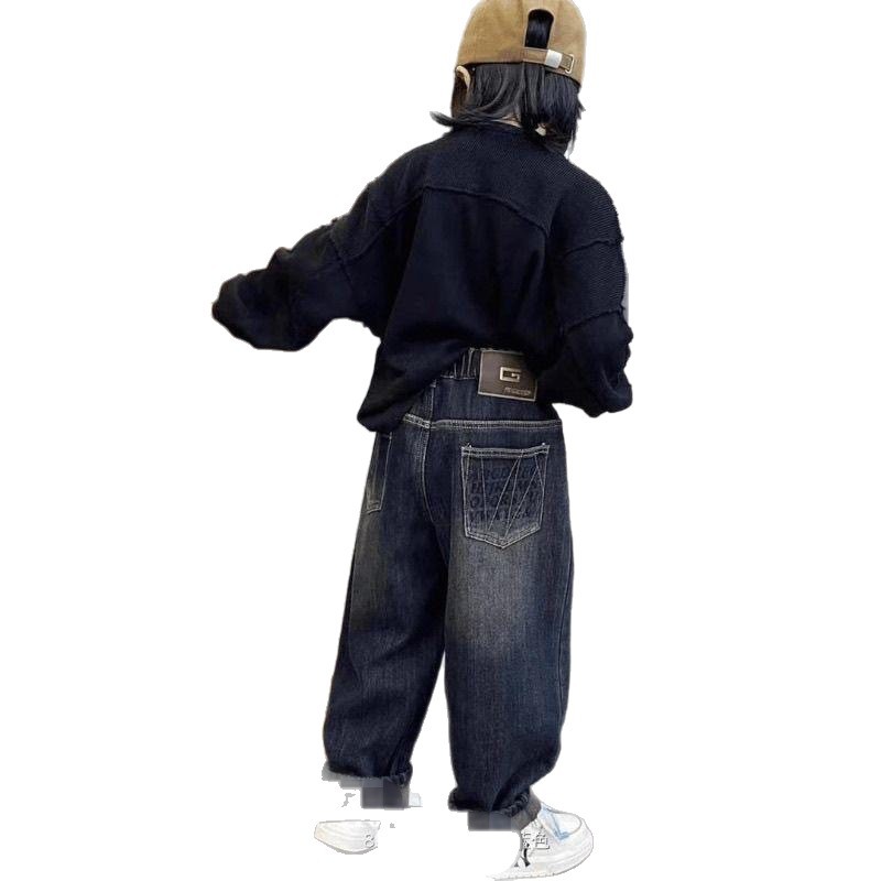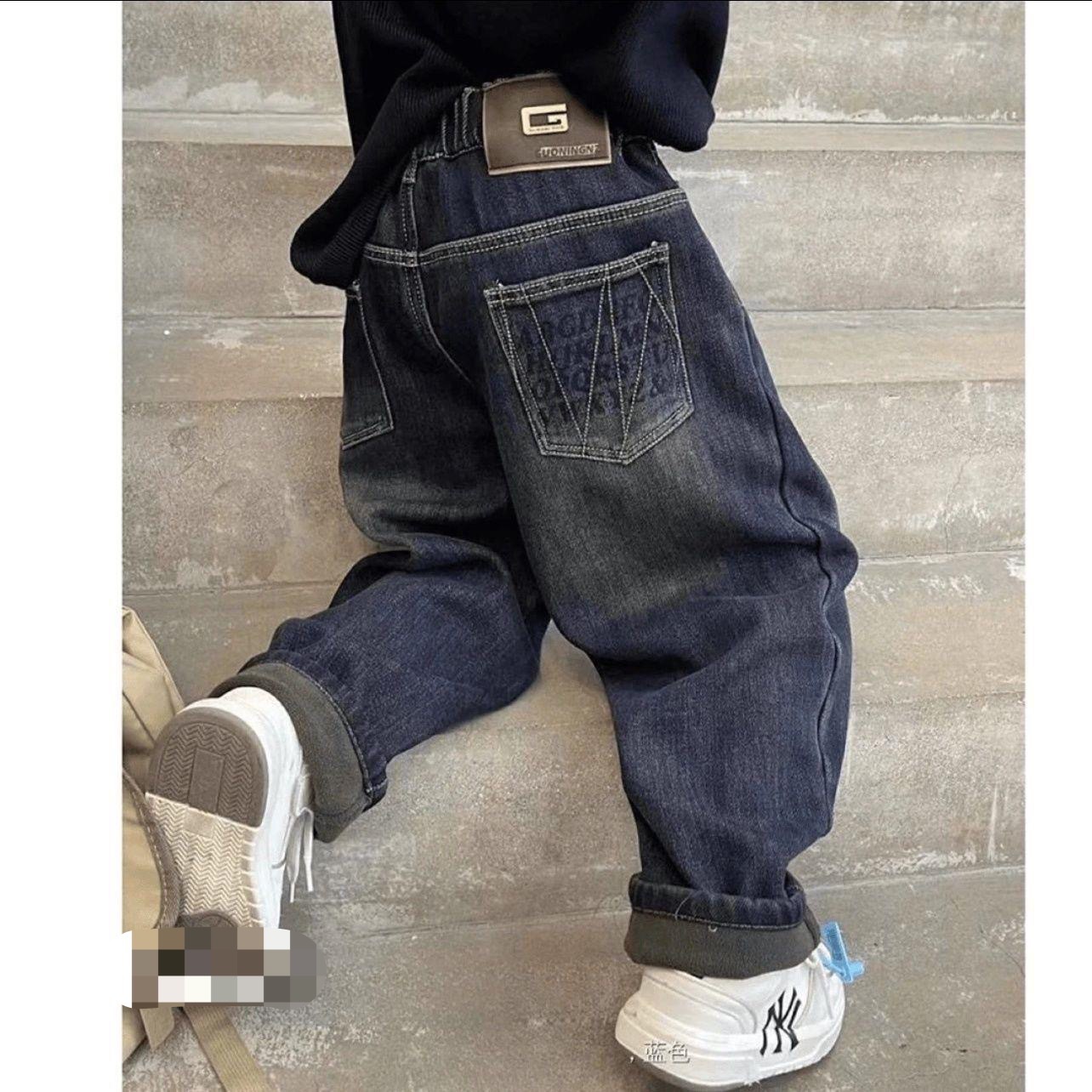 男童加绒牛仔裤新款宽松洋气儿童裤子秋冬款一体绒长裤宝宝