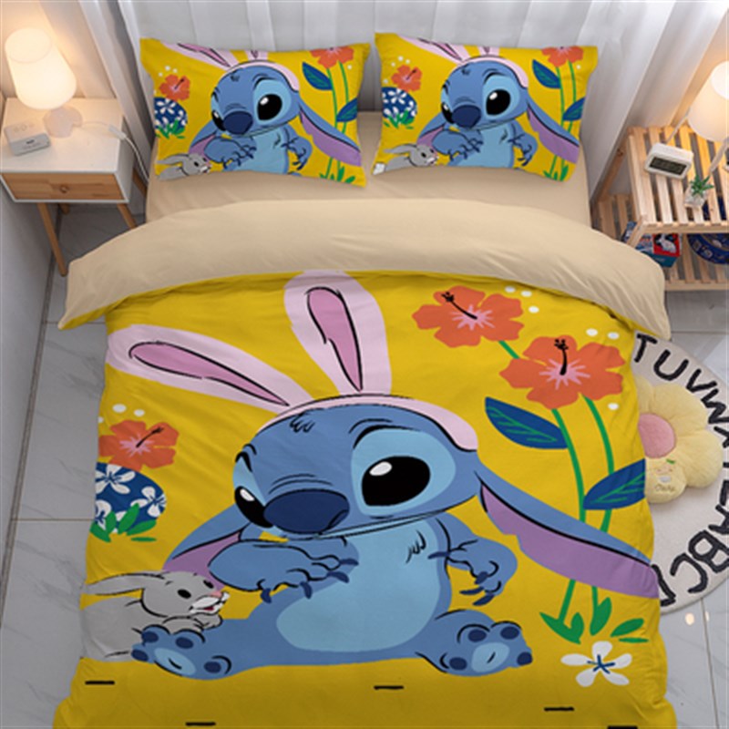 网红史迪仔四件套床上卡通动漫可爱男孩单双人床宿舍客房儿童学生