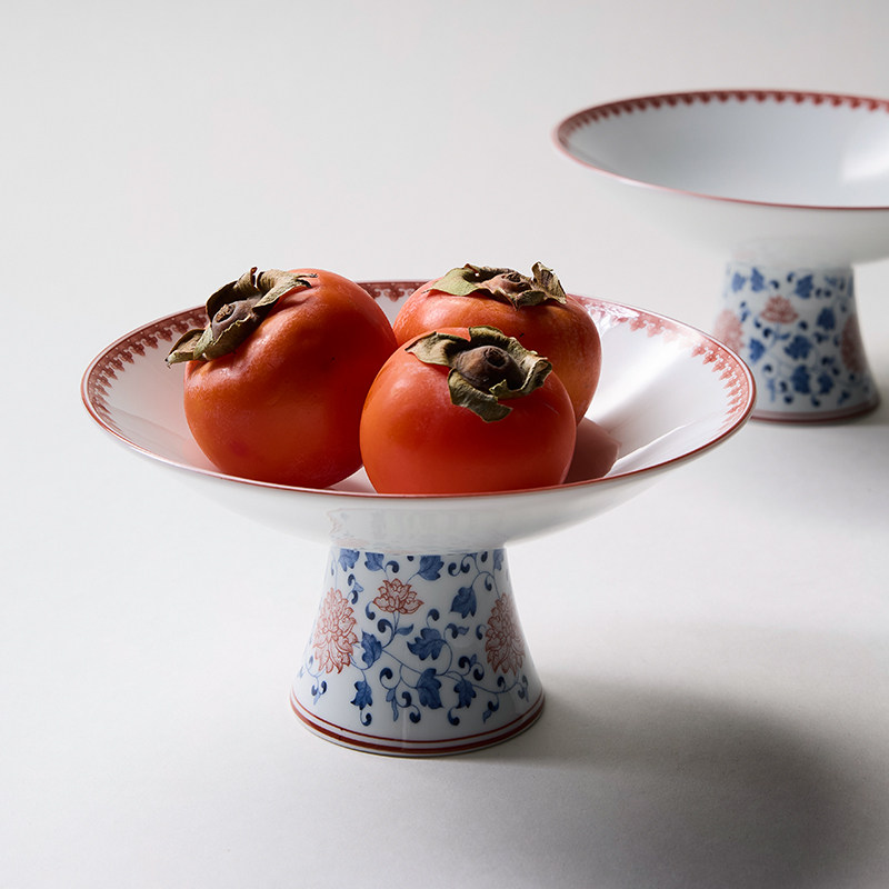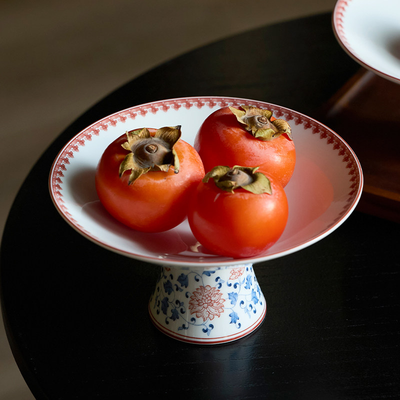 缠枝莲系列高足茶点盘果盘