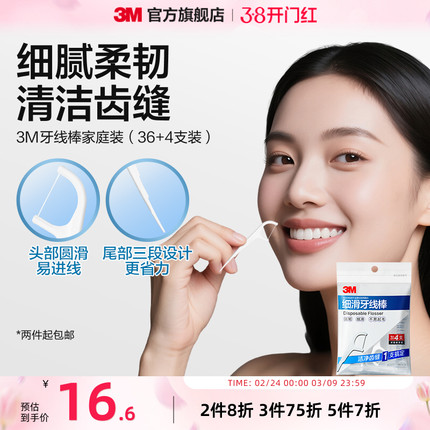3M牙线棒弓形牙齿牙缝护理清洁齿缝超细家庭装一次性高效便携深洁