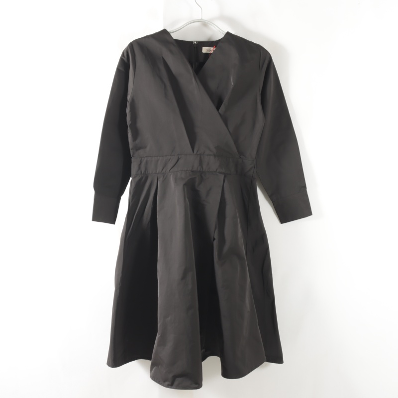 日单新款V领套头后隐形拉链松紧高腰显瘦中裙女纯色长袖A字连衣裙