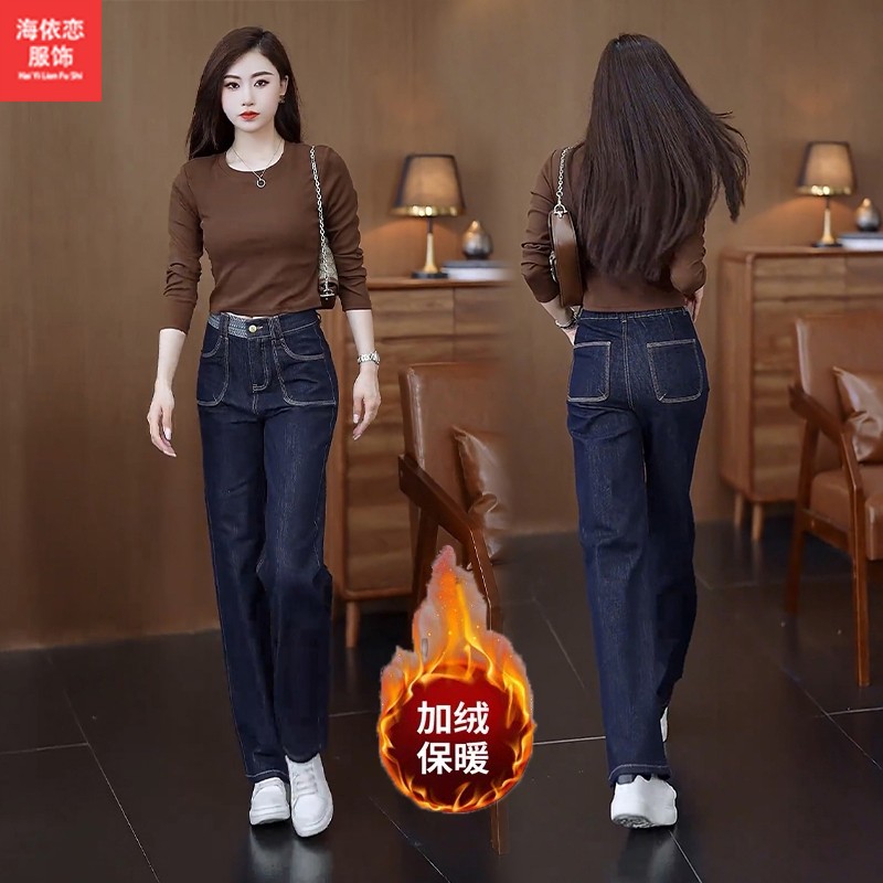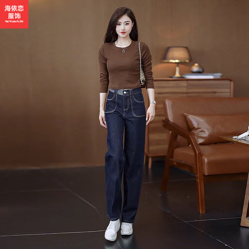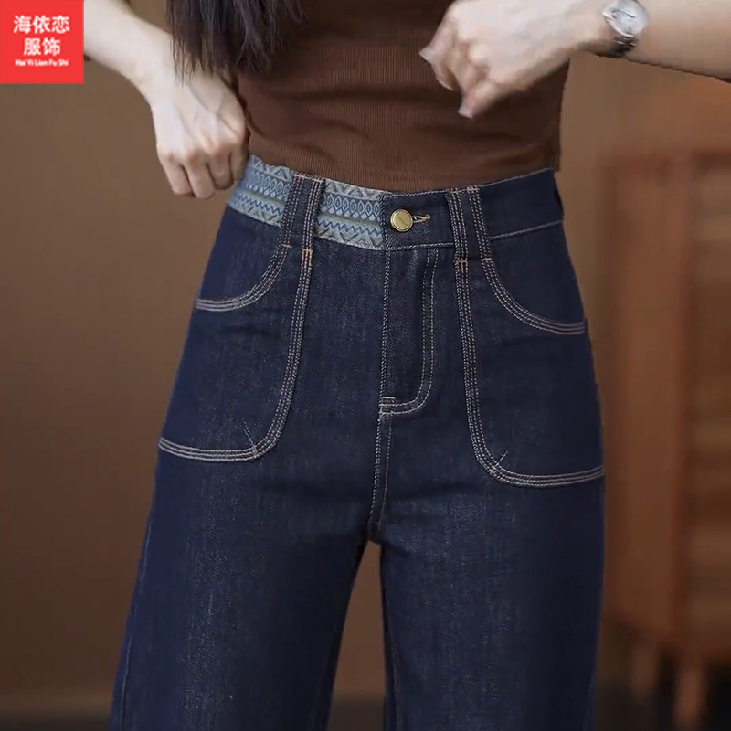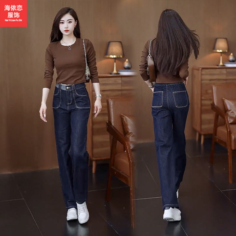 秋季新款直筒牛仔女裤大码高腰休闲显瘦版型九分长裤弹力裤子1721