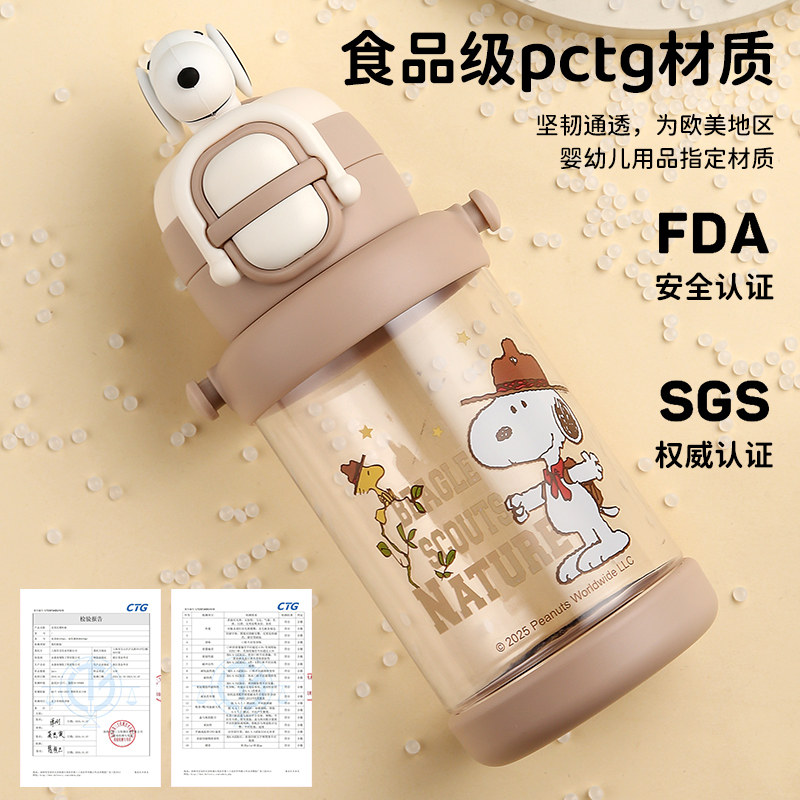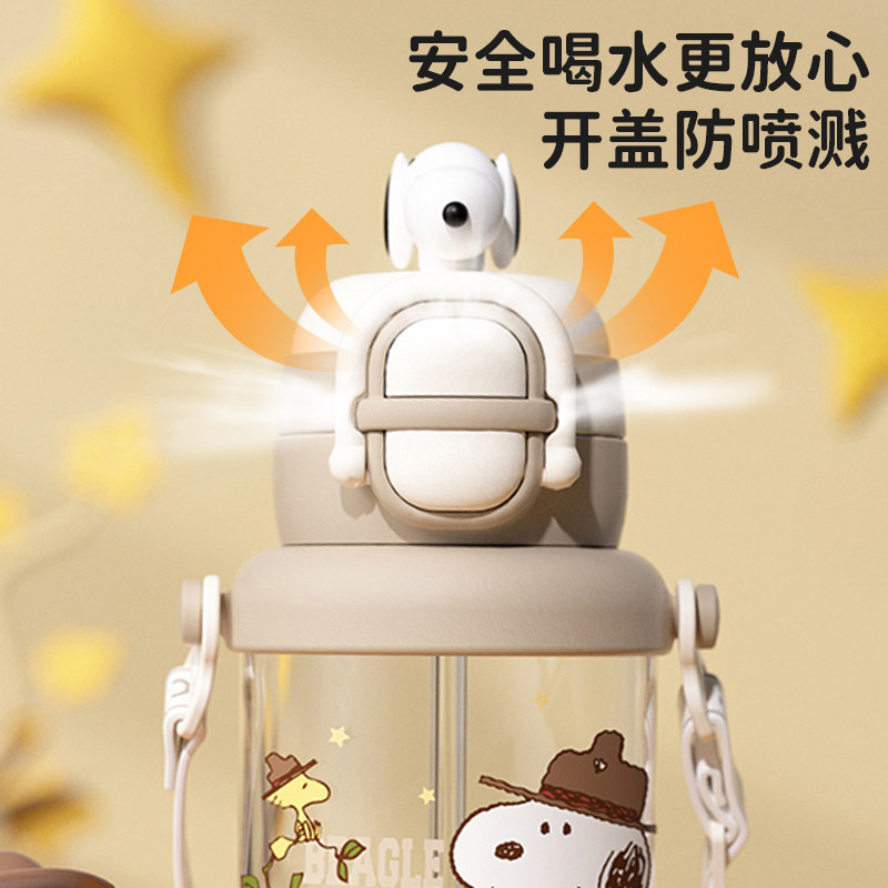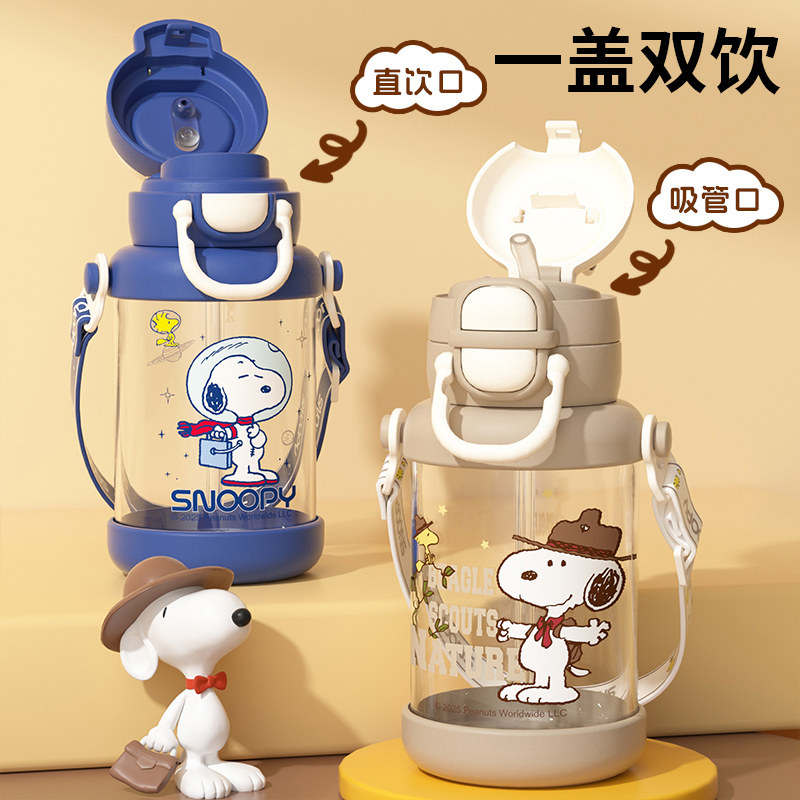 史努比儿童水杯夏天吸管杯子幼儿园宝宝双饮杯小学生上学专用水壶