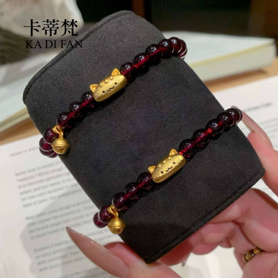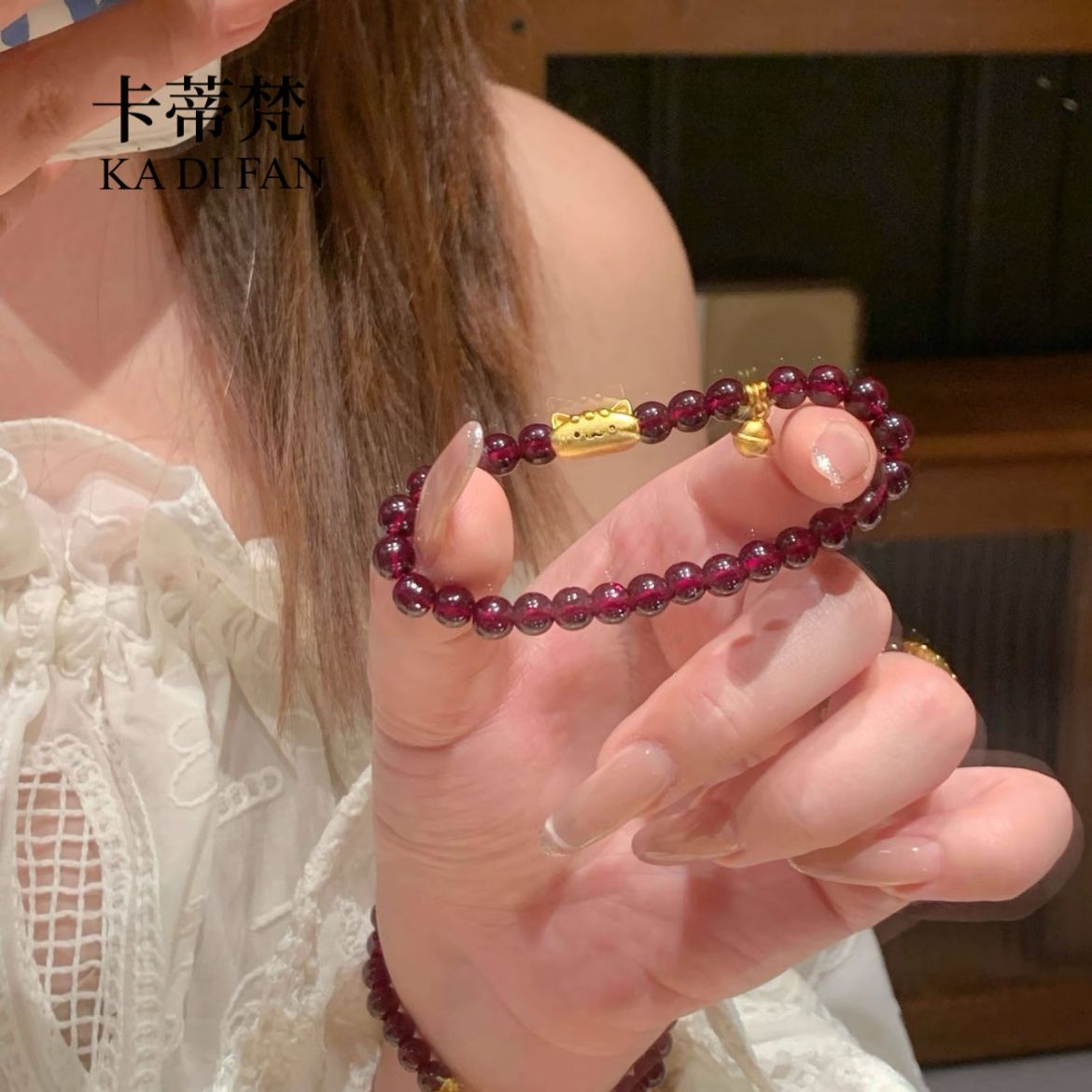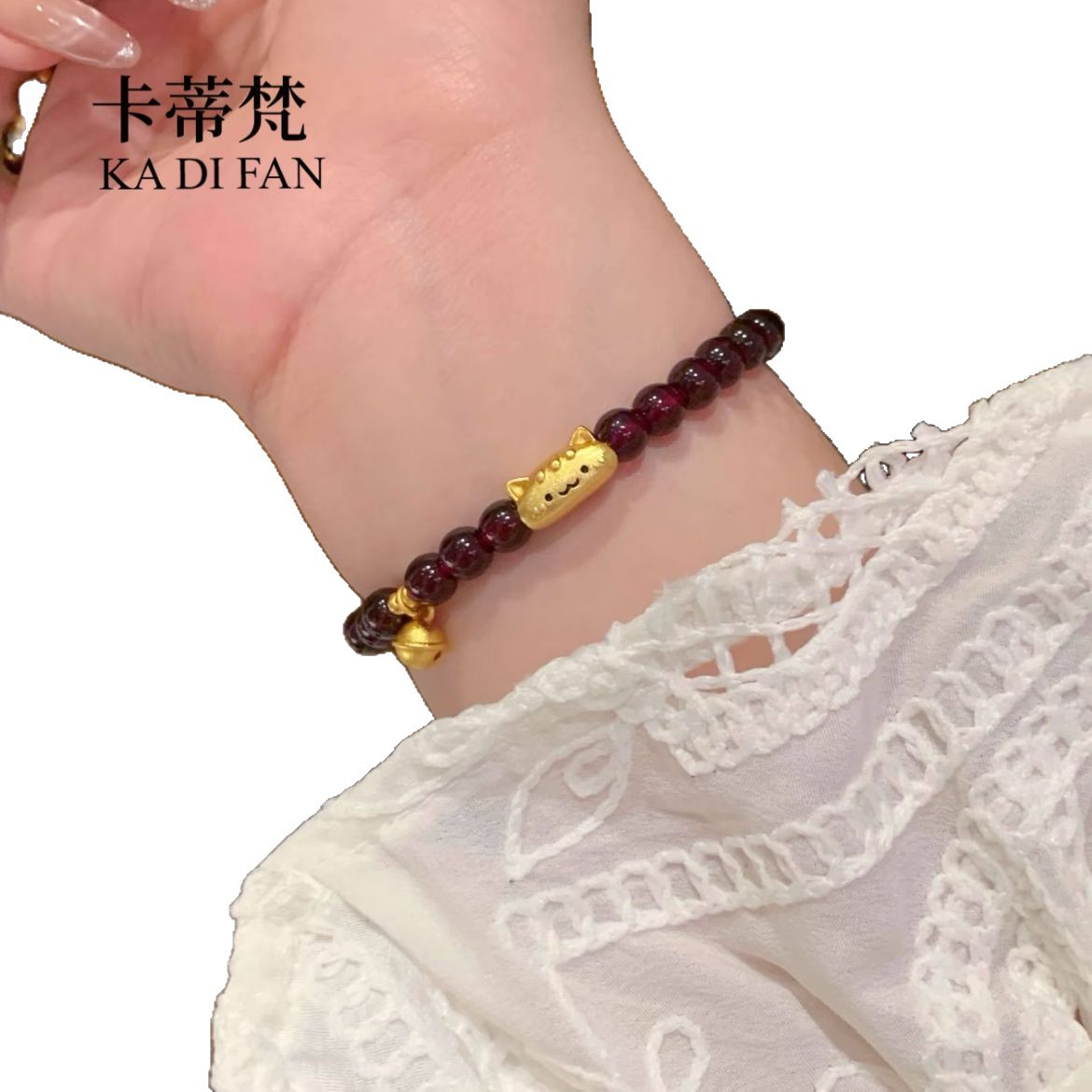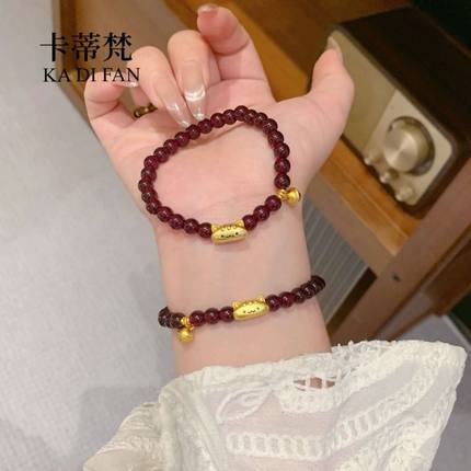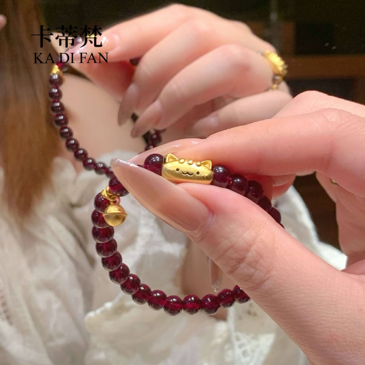 小红书爆款沙金铃铛法棍猫手链女仿石榴石转运珠手串新中式国潮