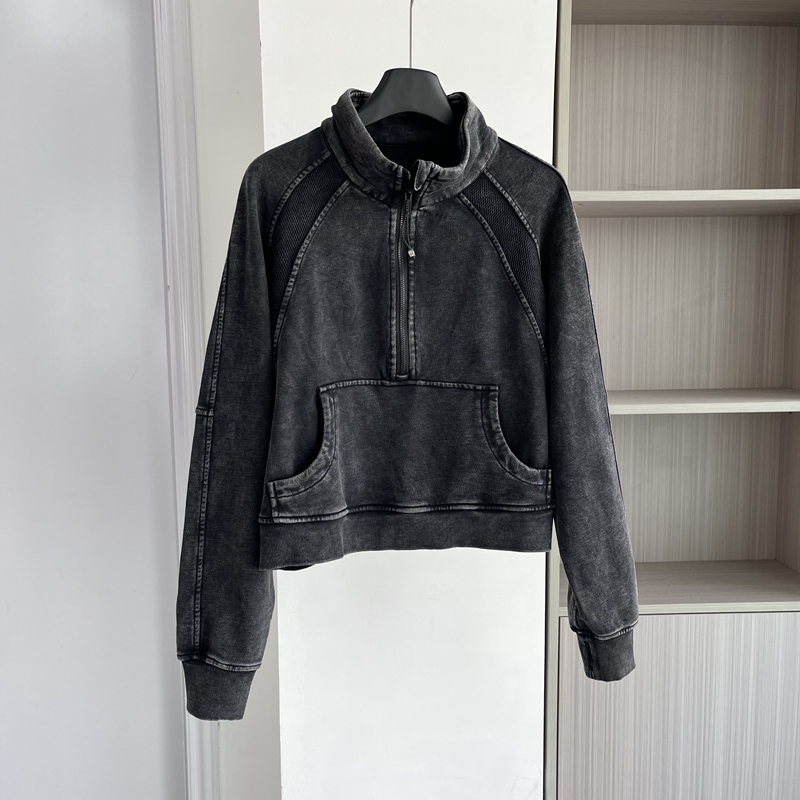 欧货潮牌2025早秋季新款做旧黑拉链套头卫衣外套女宽松休闲上衣