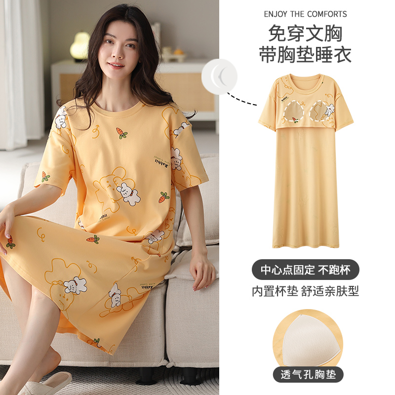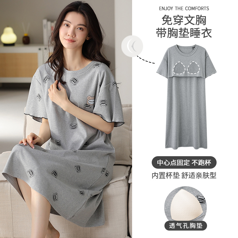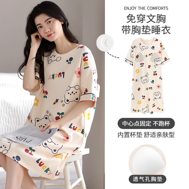 睡裙女款夏季纯棉短袖甜美可爱睡衣女士连衣裙家居服防凸点可外穿