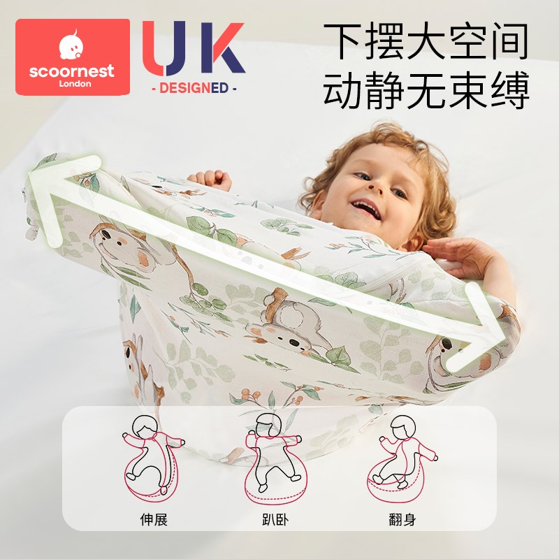 科巢婴儿睡袋春夏秋款竹棉纱布新生宝宝一体式儿童防踢被四季通用