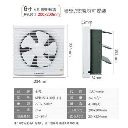 金羚8寸带前网百叶窗换气扇半塑厨房厕所静音通风排气 APB20-4-30