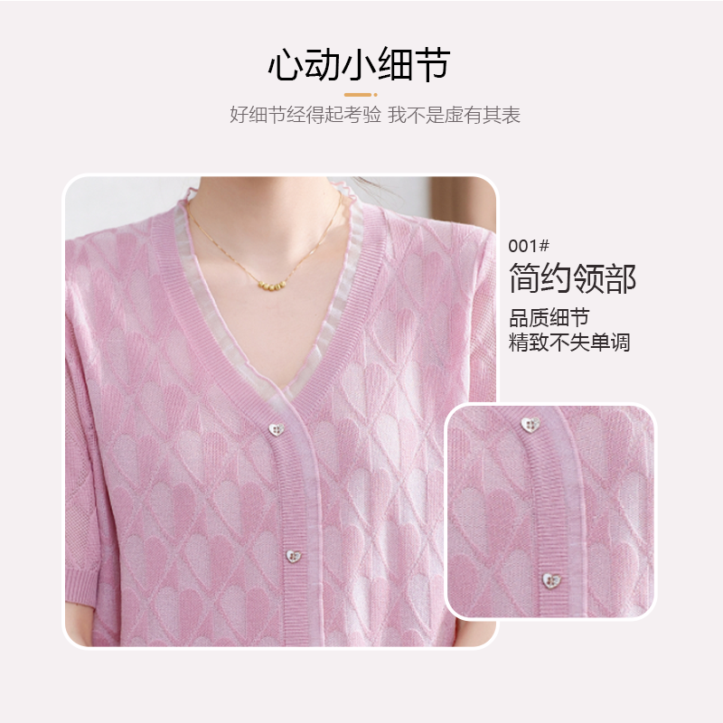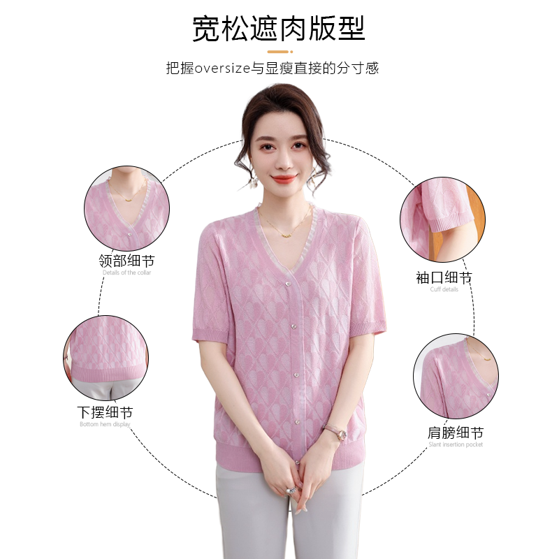 妍影妈妈夏装莱赛尔针织冰丝小衫短袖中老年女夏季上衣针织衫洋气