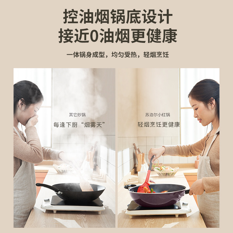 苏泊尔炒锅易洁不粘锅无油烟电磁炉明火通用30/32/34cm炒菜锅具