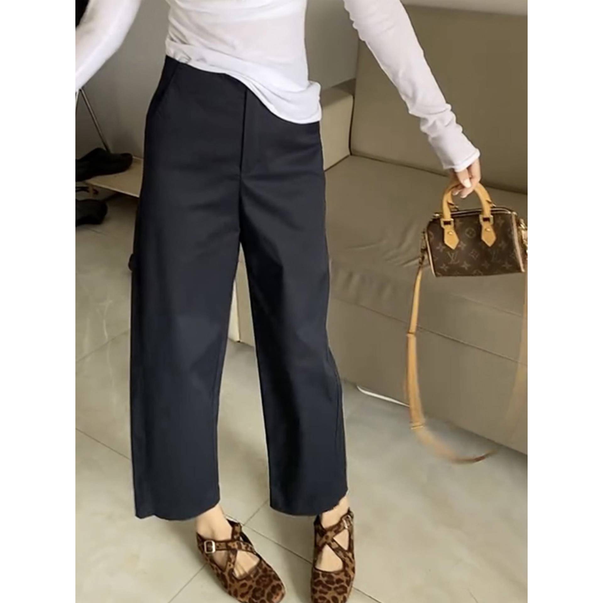 黑色直筒西装裤女秋季新款大码梨形显瘦小个子宽松时尚百搭九分裤