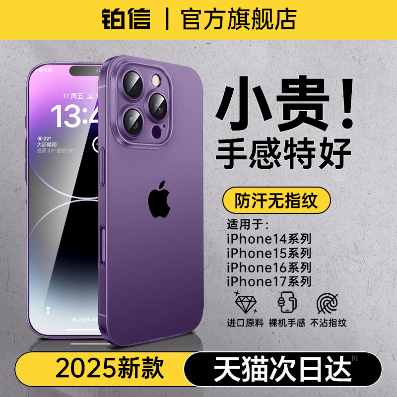 【超薄手感】铂信适用苹果14Promax手机壳iphone16Pro新款磨砂保护套15镜头全包17防摔散热高级感13情侣透明p