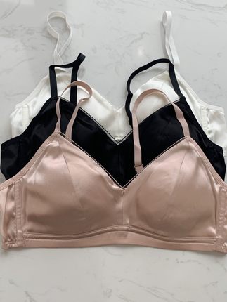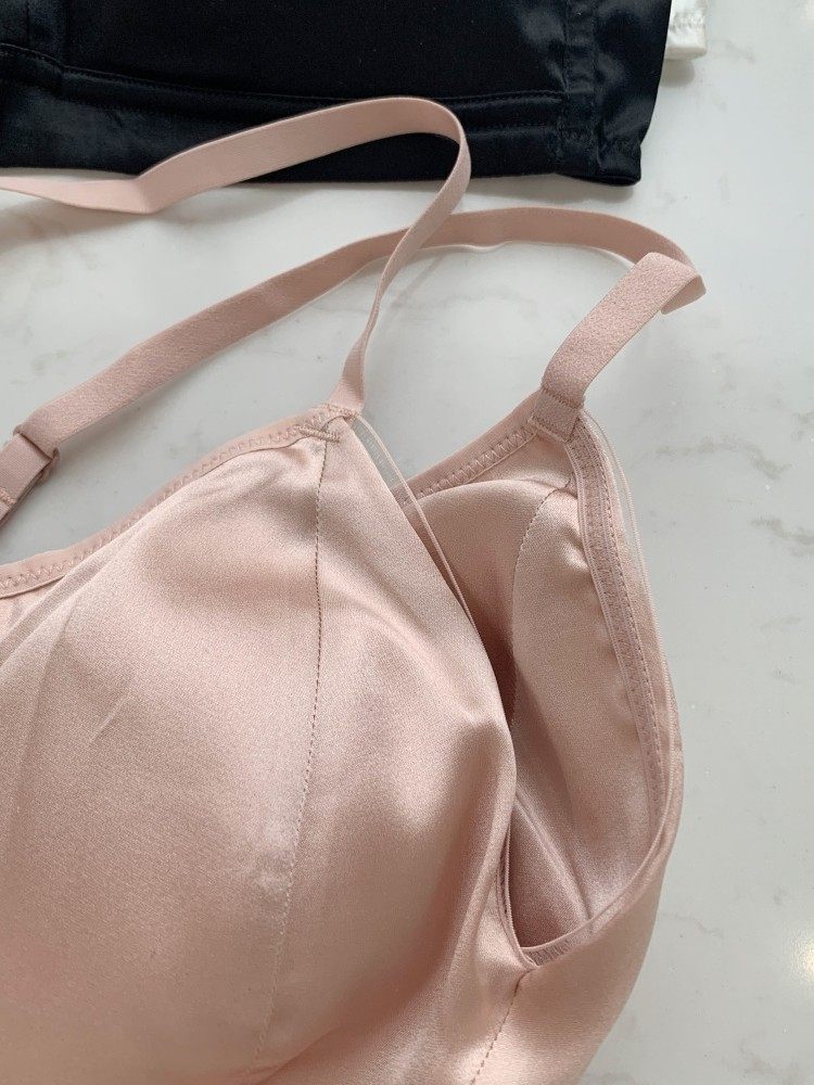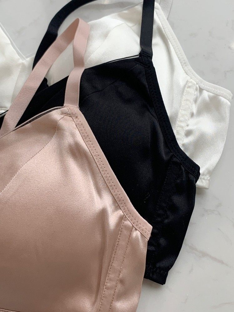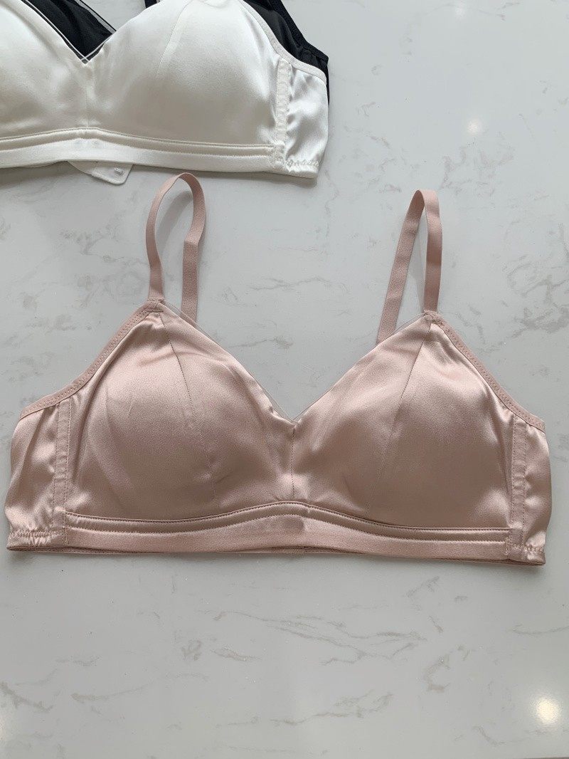 内在美~柜货法式光面素绉缎桑蚕丝薄款无钢圈聚拢真丝文胸春夏新