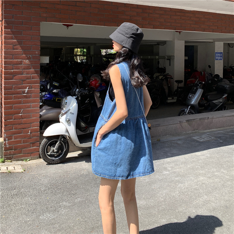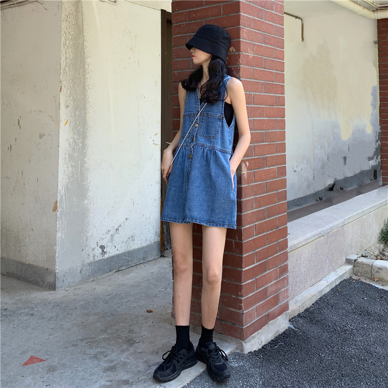 150小个子秋装搭配连衣裙韩版学生宽松牛仔A字裙网红背带短裙潮XS