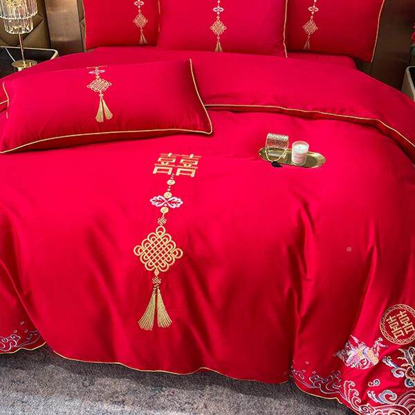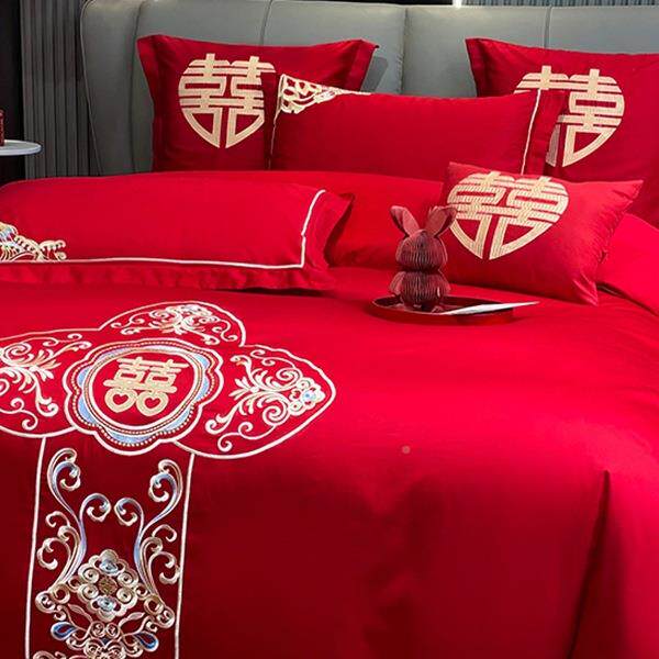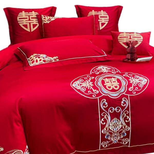 被庆四件套大红中婚式F987JJJ5龙凤刺绣新结婚房嫁礼床床单笠喜上